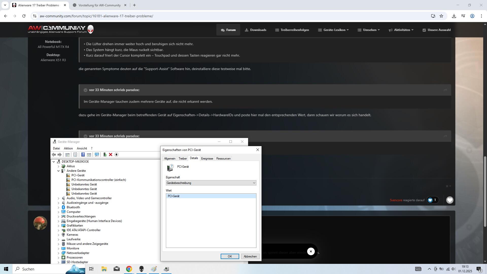Hallo @paradox, Die passenden Treiber für dein Gerät solltest du auf der Dell-Support Seite angezeigt bekommen indem du deinen Service TAG (findest unten auf Gerät oder im BIOS) dort eingibst. Da gibt es dann auch eine Übersicht welche Hardware bei deinem Gerät konfiguriert bzw. verbaut wurde. die genannten Symptome deuten auf die "Support-Assist" Software hin, deinstalliere diese testweise mal bitte. dazu gehe im Geräte-Manager beim betreffenden Gerät auf Eigenschaften->Details->HardwareIDs und poste hier mal den entsprechenden Wert, dann schauen wir worum es sich handelt. diese sollten sich über das Command Center steuern lassen -