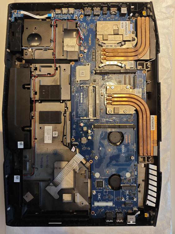 So es gibt Neuigkeiten. 1. Die GTX 980m ist da. Passendes Xbracket ist Gott sei Dank dabei. 2. Die Heatsink für die Slave GPU ist da. 100w Nvidia, OEM Dell und neu unbenutzt. 3. Die Master GPU Heatsink ist da. Eindeutig eine Fake Heatsink. Wusste gar nicht das es da ne Masche gibt. Schaut selbst. So sollte sie aussehen. Mit dem NV100w Aufkleber und passender Partnumber Angekommen ist das: 1. Partnumber einer NV75w Heatsink. 2. Der Verkäufer hat die Fotos des Angebotes bei eBay im Nachgang ausgetauscht (von OEM zu Fake) 3. Sie hat zwar 3 Heatpipes aber man sieht eindeutig das ursprünglich 2 drauf waren und die Heatsink umgelötet wurde. Die Farbe einer Pipe ist auch anders. Hab bei PayPal nen Fall auf. Mal sehen ob's das Geld wieder gibt. Dafür sehr gute Neuigkeiten. Ich hab einen Anbieter gefunden der Custom Heatsinks komplett aus Kupfer anbietet. Direkt modifiziert für die 980m, 1060 und 1070. Perfekt. -