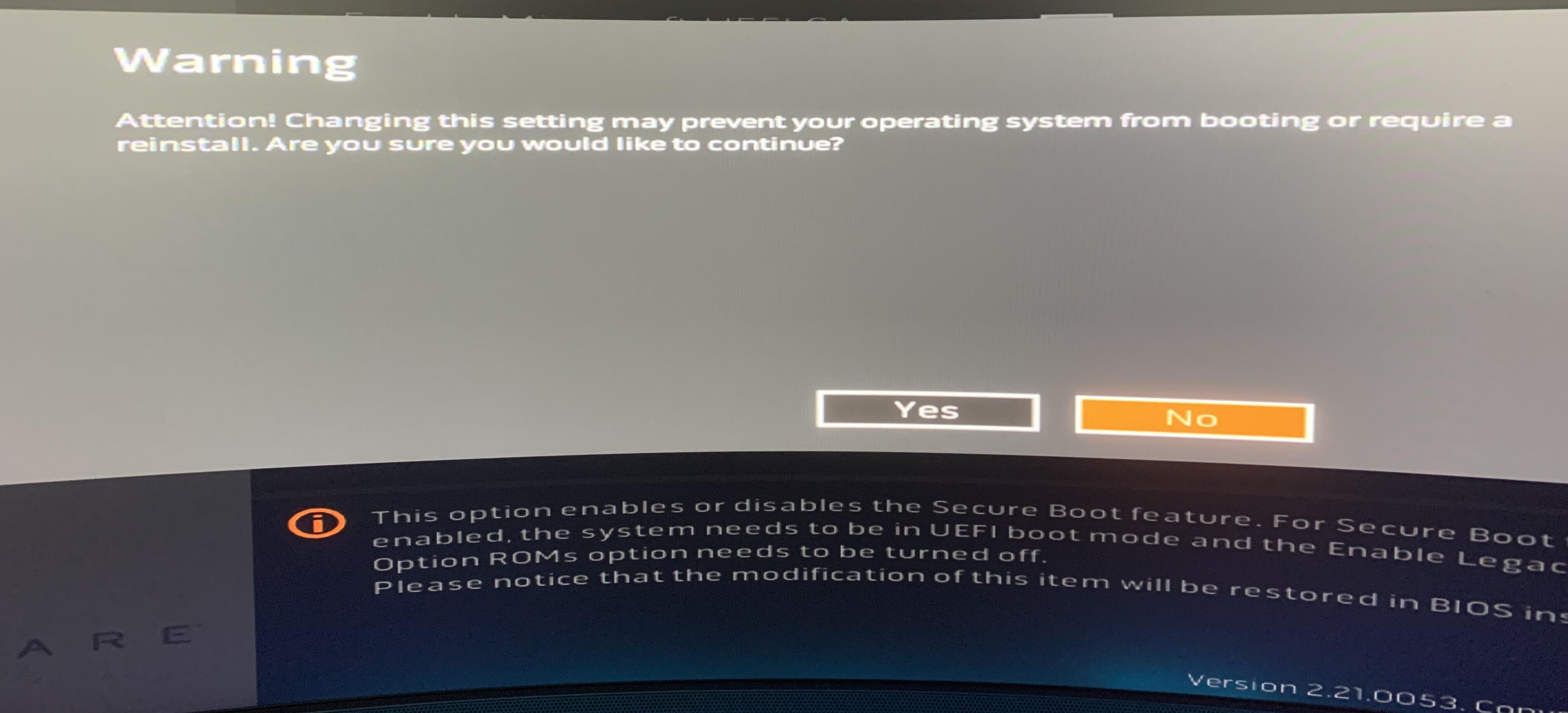 5. @kroenen04: Laut dem erwähnten offiziellen DELL/Alienware Info sollte man das tun, weil es für mehr Sicherheit sorgt. Und gerade in Deinem Fall mit dem Hack Deines PC in der Vergangenheit würde ich die Option wieder aktvieren. Nur wenn Du anschließend feststellen solltest, dass irgendwelche gravierenden Hard-/Softwarewarefehler auftreten, dann besser deaktiviert lassen. Ich nehme an, dass der DELL/Alienware Support Mitarbeiter die Option Secure Boot seinerzeit nur deaktiviert wissen wollte, damit Du mit größtmöglicher Kompatibilität das Windows bzw. die Hardware und alle erforderlichen Treiben über den USB-Stick installieren konntest.