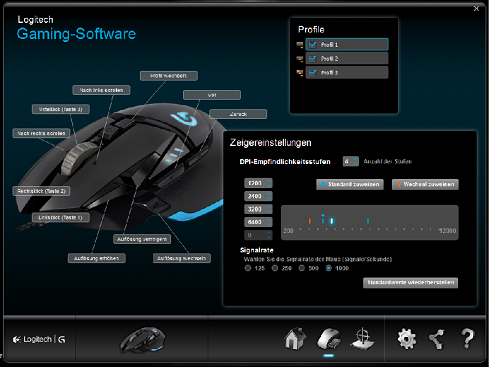 Da es mal wieder Zeit wurde für eine neue Mouse plus Mousepad, wurde meine Logitech G700 und das Alienware Mousepad nach 5 Jahren Benutzung in Rente geschickt und ich habe mir etwas Neues zugelegt. Gekauft habe ich mir wieder Produckte von Logitech da ich mit Qualität, Haltbarkeit und Design von dieser Firma überzeugt bin. Zunächst einige Daten der Mouse und des Pads im Überblick: Logitech G502 Proteus Core Tunable Gaming Mouse kabelgebunden11 programmierbare TastenGewichts und Schwerpunktanpassung mit beiliegenden GewichtenEmpfindlichkeitsumschaltung im Spiel per KlickScrollrad mit zwei BildlaufmodiAuflösung 200 - 12000 DPIGummierte GriffflächenLänge 132mm, Breite 75mm, Höhe 40mm, Gewicht 168g3 Jahre eingeschränkte HardwaregarantiePreis 89,99€ (bei Logitech) Logitech G440 Hard Gaming Mouse Pad Reibungsarme und feste Polyethylen- Oberflächegleichmäßige OberflächenstrukturHarter Polystyren- KernUnterseite aus NaturkautschukLänge 340mm, Breite280mm, Höhe 3mm, Gewicht 229g3 Jahre eingeschränkte HardwaregarantiePreis 29,99€ (bei Logitech) Ich habe mich dieses Mal für eine kabelgebundene Mouse entschieden. Meine Vorgängermouse war ja eine Funkmouse die nur zum Aufladen mit dem Kabel angeschlossen werden musste. Da die wieder aufladbaren Batterien auch keine unendliche Lebensdauer haben und ich beruflich bedingt immer unterwegs bin, ist es manchmal vorgekommen das die Batterie so langsam den Geist aufgab und ständig mit Strom versorgt werden musste. Dieser Umstand hat mich doch ziemlich abgenervt und deshalb eben diesmal "mit Kabel". Das Kabel der G502 ist ca. 2m lang und bietet somit auch genug Bewegungsfreiheit. Wem das zu lang ist, der kann es mit einem am Kabel befestigtem Klettverschluss zusammenhalten. So wird ein allzu großes Kabelwirrwar auf dem Tisch vermieden. Das Kabel selbst hat eine geflochtene Ummantelung und ist sehr flexibel. Die Maus selber hat 11 frei belegbare Tasten. Natürlich die rechte und linke Mousetaste und das Scrollrad, wobei das Rad alleine schon 3 "Tastenfunktionen" plus Aufwärts und Abwärtsscrollen inne hat. Man hat also das Scrollrad mit seitlichen Klick nach recht und links, sowie Draufklicken und dem Scrollen. Neben der linken Mousetaste befinden sich zwei weitere, sehr gut erreichbare Tasten. Für den Daumen stehen drei Weitere zur Verfügung. Über dem Scrollrad sind zwei weitere Tasten. Die eine direkt über dem Rad hat aber lediglich die Funktion das Scrollrad zu entsperren und kann nicht anders belegt werden. So kann man entweder Zeile für Zeile scrollen oder man hat im entriegelten Zustand einen freien Bildlauf. Das eignet sich hervorragend bei langen Dokumenten, Internetseiten, … . Die zweite Taste über dem Scrollrad ist um zwischen einzelnen Profilen der Mouse hin und her zu schalten. Die Tasten selber sind alle sehr gut erreichbar und haben einen kurzen aber klaren Klickpunkt. Einzig das Scrollrad hat nicht so ganz bestimmte Punkte und ist gerade beim Hochscrollen recht laut. Die Mouse selber liegt auch bei größeren Händen sehr gut in der Hand. Zusätzlichen Halt bekommt man durch die gummierten Oberflächen an den Seiten, dort wo Daumen, Ring und Kleiner Finger die Mouse festhalten. Zusätzlich ist an diesen Stellen auch noch eine Oberflächenstruktur eingebracht und sorgen für noch mehr Gripp. Es gibt auch noch zwei Beleuchtungselemente an dem Gerät. Zu einen oben auf der Mouse ist ein beleuchtetes G. Dieses steht für das G aus der G- Serie von Logtitech. Es leuchtet immer blau wenn die Mouse angeschlossen ist kann aber auch deaktiviert werden. Eine andere Farbe kann meines Wissens nicht eingestellt werden. Zweitens gibt es noch drei weitere LED`s seitlich der linken Mousetaste. Diese zeigen euch an welches DPI- Profil ihr eingestellt habt. Das kann unter Umständen sehr hilfreich sein wenn man "in Game" per klick verschiedene DPI- Werte einstellen kann. Um alle diese Funktionen nutzen und einstellen zu können müsst ihr euch bei Logitech die "Logitech Gaming Software" runterladen. Diese Software ist kostenlos. Damit könnt ihr die Mouse auf eure Bedürfnissen einstellen, verschiedene Profile abspeichern und Tasten frei belegen. Die G502 lässt sich ohne diese Software nur eingeschränkt nutzen. Die minimalen Funktionen einer Mouse gehen natürlich. Sobald ihr dann aber die Software habt und diese öffnet wird eure Mouse sofort erkannt und ihr könnt loslegen. Hier ist mal ein Bild und der Link zur Software.: http://support.logitech.com/software/gaming-software Auf der Unterseite der Mouse befindet sich noch ein Fach wo man bis zu fünf kleine Gewichte mit je 3,6g unterbringen kann. Diese kleinen Gewichte sind im Lieferumfang des Gerätes enthalten und sollen dem User die Möglichkeit geben eine ausgewogene Balance zu finden. Sollten diese Gewichte einmal verloren gehen könnt ihr diese bei Logitech auch nachbestellen. Ebenso nachbestellbar sind die kleinen "Füße" der Mouse die sich je nach verwendeten Untergrund auch abnutzen können. Der Preis ist jedoch nicht ganz günstig. Als passende Unterlage habe ich mir noch das G440 Hard Gaming Mouse Pad dazugekauft. Als das zu mir nach Hause kam war ich anfangs ein wenig über die Größe überrascht. Es ist doch deutlich größer als mein altes Alienware- Mousepad. Wenn ihr als nicht so viel Platz habt auf eurem Tisch achtet bitte auf die Abmessungen des Pads. Wenn ihr beides zusammen, also Mouse und Pad verwendet, wird euch al erstes der geringe Reibungswiderstand zwischen der G502 und dem G440 auffallen. Durch die verwendeten Materialien gleitet die Mouse wirklich mühelos über das Pad. Durch die mit Naturkautschuk beschichtete Unterseite liegt das G440 schön satt auf auf dem Tisch. Sobald ein wenig Druck auf das Pad ausgeübt wird scheint es auf der Oberflache des Tisches zu kleben und man verschiebt da gar nichts mehr. Das und die Tatsache das die Mouse so hervorragend auf dem Pad gleitet hat mich am meisten vom G440 überzeugt. Bilder zur Mouse und dem Pad k