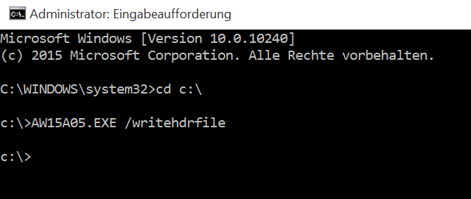 Ja das ist die ProzedurbeschreibungokDu lädst ganz normal das BIOS herunter ... z.b. hier bei uns: ... Die Version A05, weil das Upgrade auf A06 ja fehlschlug http://www.aw-community.com/forum/files/file/235-alienware-17-r2-system-bios/ Das Archiv entpacken und die Datei direkt auf Festplatte "C" speichern. Dann CMD als Admin ausführen und folgende Befehle ausführen: Dann erstellt er dir auf "C" diese ominöse .hdr DateiOkOkGenau, Akku leergelaufen verbaut lassenGenau so durchführen wie es da steht. Sprich: - USB-Stick mit den kopierten Dateien anschließen, "END" Taste gedrückt halten, Netzteil anschließen (das sollte bisher nicht angeschlossen gewesen sein!)Die Frage ist gut. Ich würde das so lange gedrückt halten, bis man irgendeine Aktivität erkennt (USB-Stick hat eine LED?!)OK1 Punkt