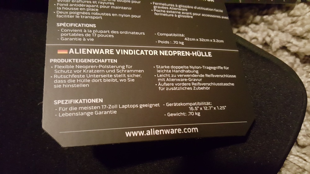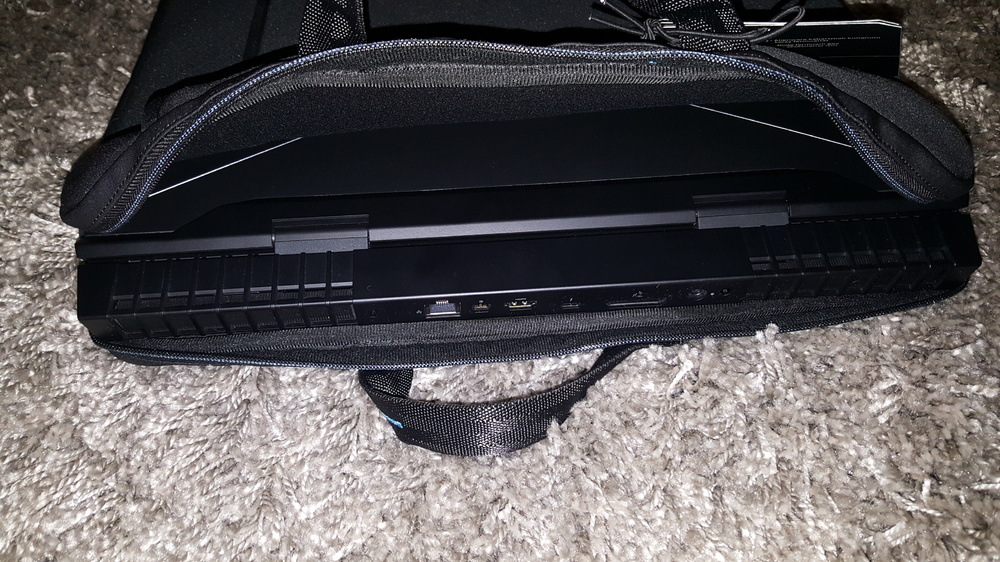 3. Hier nochmal ein paar Bilder von der Neopren-Hülle. Sehr schöne Qualität wie ich finde, der AW 17r4 passt gerade so rein und in die vordere Reißverschlusstasche passt mit ein wenig Mühe das Netzteil rein. Reicht für meine Bedürfnisse völlig aus.
