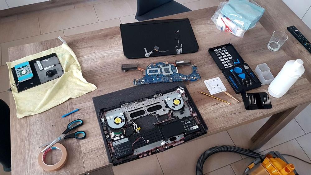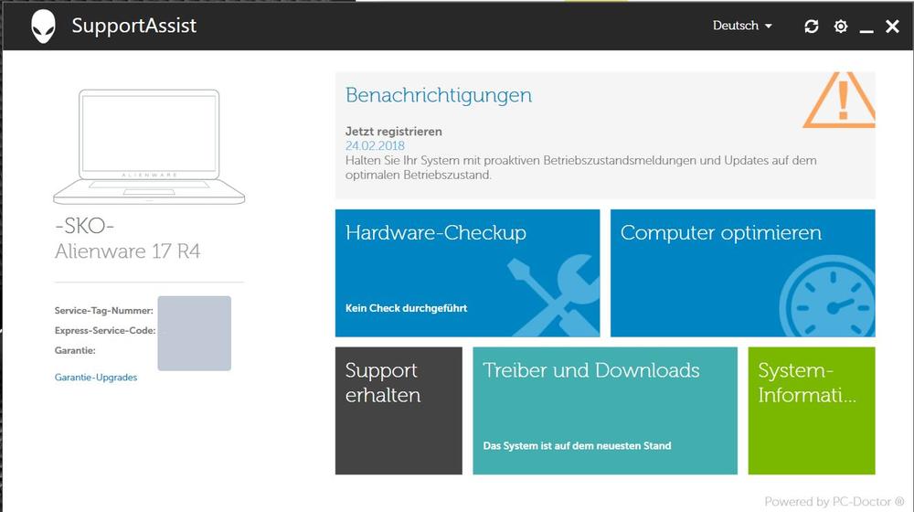 Alles halb so wild, im Grunde ist das nicht so viel anders als beim PC, außer das man weniger Platz hat. In beiden Fällen sollte man sich dafür Zeit nehmen und gewissenhaft vorgehen. Wenn man sich nicht sicher ist, im Forum oder über Youtube informieren. Die einzige Sache wo man beim Notebook wirklich verdammt vorsichtig sein sollte sind die Flachbandkabel und so ziemlich alle kleinen Stecker. Ich würde niemals an den Kabeln ziehen um einen Stecker zu lösen. Die Gefahr ist zu hoch das mal ein Kabel aus dem Stecker gerissen wird. Vorsicht ist auch bei den Buchsen der Flachbandkabeln geboten. So gut wie alle Buchsen haben einen Einrast- oder Klappmechanismus um das Kabel zu lösen/ arretieren. Also vorher genau den Stecker anschauen. Wenn man das oft genug gemacht hat, dann kennt man eigentlich die gängigen Notebook Stecker und weiß wie man sie sicher ab und wieder rein bekommt. Sich vorher erden, immer als aller erstes den Akkustecker entfernen usw. versteht sich, denke ich mal von selbst. Vieles davon steht auch im Service Manual. Als ich das R2 abgeholt habe, hat der Besitzer vorher Windows wieder zurück gesetzt. Da ich die Hardware testen musste, gibt's von Dell für die Alienware Notebooks eine Software, "Support Assist" nennt sie sich. Dort kann man die Hardware und die Performance testen, Treiber runterladen usw. Das habe ich dann nach dem Repaste gemacht. Ich hatte bis jetzt nicht wirklich Zeit gehabt großartig irgendwelche Software auf das Notebook zu installieren, also habe ich das erst beste genommen, was ich gefunden habe. So sieht sie aus:1 Punkt