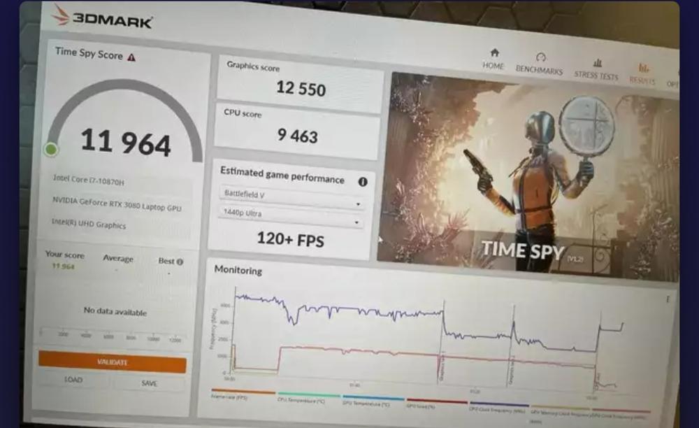 - Time Spy: 12.120 (Graphics: 12.550, CPU: 10.150)
