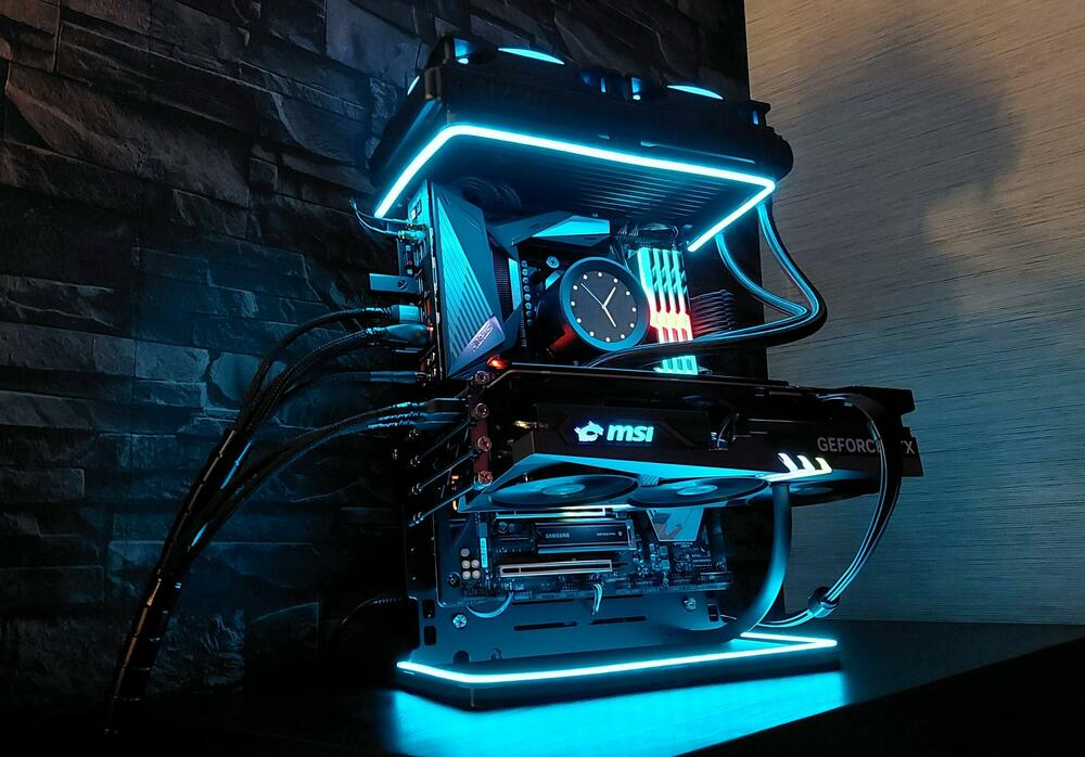 3. Die sind schon nicht schlecht bzw. schon mit das beste, was man fertig kaufen kann. Top Hardware, normalerweise auch vernünftig abgestimmt und mit Liebe zum Detail aufgebaut + Garantie & Service auf Dichtigkeit, schneller Austausch usw., aber halt entsprechend bepreist. Muss halt jeder selbst wissen, ob es einem das wert ist. Unabhängig vom Preis, auf jeden Fall besser als irgend ne AW/ Dell Bude (Desktop-System). MMn brauchst du dafür nicht ins Ausland schielen. Ähnliche Systeme bietet beispielsweise auch CK an. Auch im Hardwareluxx gibt es z.B. User, die dir grundsätzlich alles bauen können (bieten diesen Service an). Ich selbst macht das ja nicht anders und baue auch häufig Systeme für andere. Allerdings mach ich nichts (mehr) mit irgendwelchen Custom-Loops. Ist einfach zu viel Arbeit, die letztendlich auch nicht jeder bezahlen möchte. Der Hauptgrund für mich ist aber, dass ich nach 6, 12 oder mehr Monaten keine Lust hätte, mich um beispielsweise Wakü-Kreislauf usw. zu kümmern. Zudem hast du natürlich wesentlich mehr Komponenten drin, wo ein Fehler auftreten kann (Dichtung, Pumpe, AGB, Radi, Sensoren, Anschlüsse usw.). Tatsächlich wollen die meisten Leute einfach ein fertig eingestelltes/ abgestimmtes System inkl. Lüfterkurven, UV, BIOS-Settings etc. Die wollen das System dann einfach zum Zocken nutzen und sich nicht mit irgendwelchen Spannungskurven oder Taktraten beschäftigen. Wenn ich bedenke wie kühl und leise mein System im Gaming läuft (mit Luftkühlung), wüsste ich nicht mal warum ich mir ne Wakü überhaupt noch einbauen sollte. Vom Aufwand und dem Geld mal ganz abgesehen. CPU und GPU dümpeln irgendwo knapp unter 60°C im Gaming, mit minimalster Lüfterleistung. Aktuell sieht das System wie folgt aus: Der einzige nachvollziehbare Grund einer Wakü für mich wäre Optik und Bastelspaß. Im Grunde ist so ein PC-Bau keine große Sache, außer du willst irgendwas sehr ausgefallenes. Selbst mein Build ist bis auf zwei, drei Sachen (Standfuß + Anti-Sag-Mount) relativ einfach nachzubauen. Kostentechnisch fährst du sogar deutlich günstiger damit, weil du dir die ganzen Lüfter für's Gehäuse sparst^^.