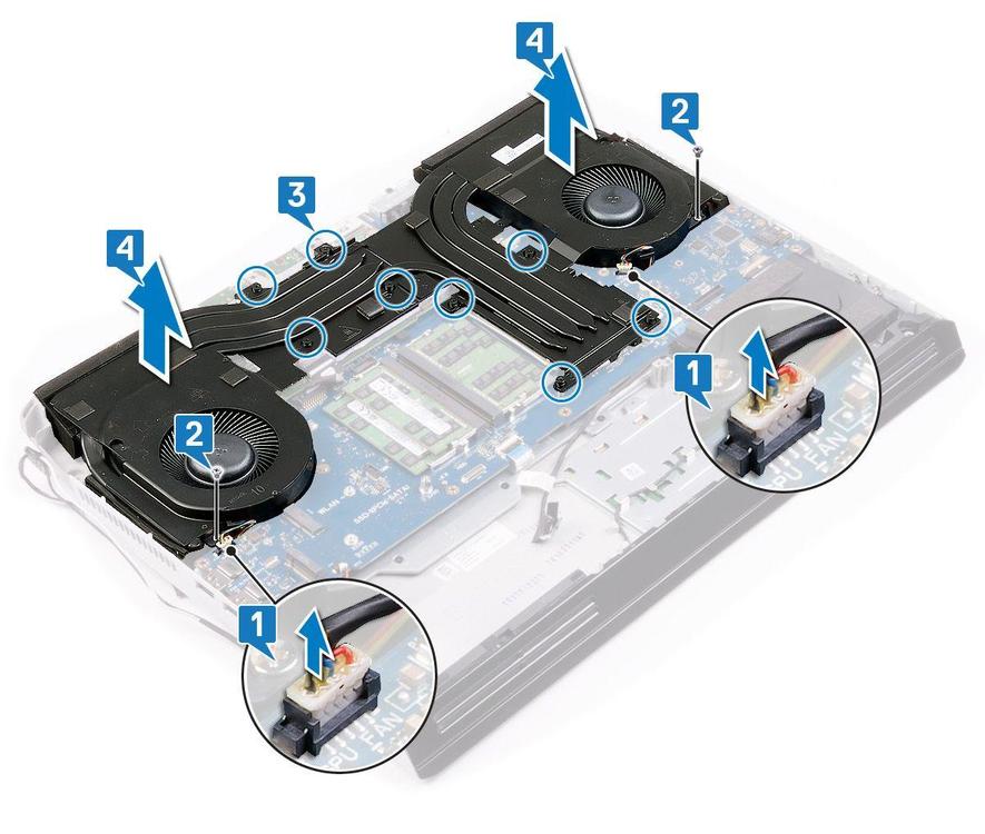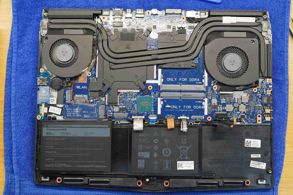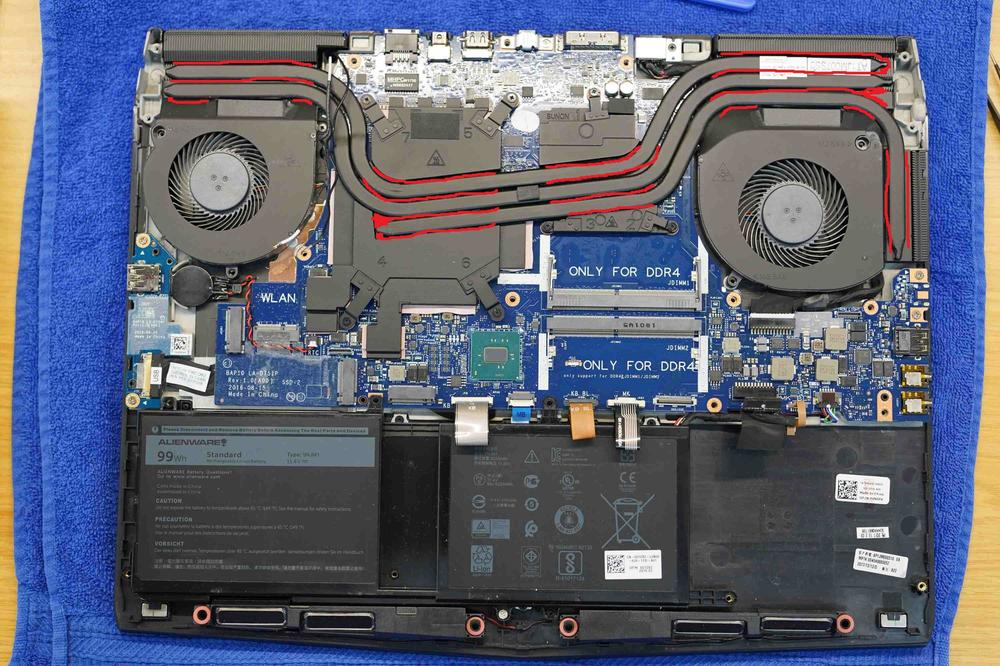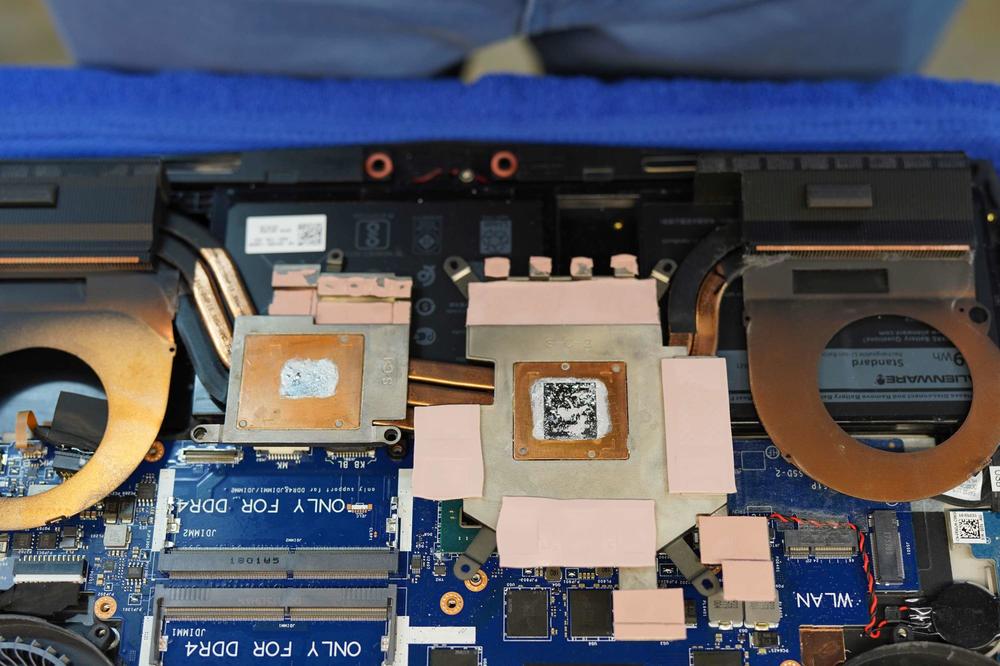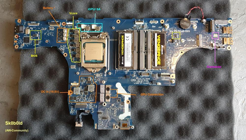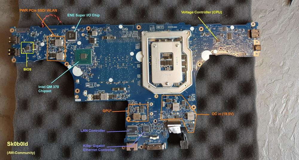 Wie immer, falls ihr es selber macht, ist das ganze alles auf eigenes Risiko. Ich übernehme keine Haftung oder Verantwortung. Vielmehr dient der Thread als Hilfestellung und Wissenserweiterung. Detaillierte Informationen zu den Sicherheitsbestimmungen findet ihr im Service-Manual Area 51m oder auf der Dell Homepage. Da ich nun schon öfter das Vergnügen hatte den Area51m zu repasten und wir hier im Forum noch kein offiziellen Repaste-Guide haben, wollte ich die Chance ergreifen und einige wichtige Informationen zum Repaste beim Area 51m zusammentragen. Dieser Repaste-Guide ist kein offizieller Guide, der vorschreibt wie man was zu machen hat, sondern zeigt eine Möglichkeit auf wie man so einen Repaste durchführen kann und zählt Empfehlungen auf, die auf meinen Repaste-Erfahrungen beruhen. Wie man den Repaste am Ende selbst an seinem eigenem Gerät durchführt, bleibt jedem selbst überlassen. Noch eine Anmerkung zur Vorgehensweise/ Darstellung im Repaste-Teil. An einigen Stellen werde ich Bilder teils doppelt posten. Ich möchte damit einfach mehrere Eindrücke und Sichtweisen von dem Repaste vermitteln und was einem im Detail erwartet. Es folgen auch einige Detailbilder wie beispielsweise von den Lüftern oder der GPU. So das man sich in dem Guide auch einige Bauteile in Ruhe angucken kann. 1. Das richtige Werkzeug Ohne gescheites Werkzeug sollte man so einen Repaste erst gar nicht anfangen. Meine Empfehlung für das passende Werkzeug ist wie immer das: Schraubendreher-Set von HAMA und iFixit Tool-Kit Das Schraubendreher-Set von Hama ist dahingehend zu empfehlen, weil es lange Bits hat, welche das iFixit-Tool-Kit leider nicht besitzt. Diese langen Bits erleichtern vor allem bei tiefen Löchern die Demontage, aber auch so hat man mit langen Bits mehr im Blick, da man nicht so viel vom PCB verdeckt. Ich empfehle auch, egal welcher Schraubendreher, immer einen Magneten an den Schraubendreher zu stecken. So bleiben die Schrauben immer schön am Schraubendreher. Bei mir schaut das wie folgt aus: 2. Die richtige Vorbereitung Mit ein paar kleinen Tricks kann man sich das Leben deutlich einfacher machen und Fehler vorbeugen. So wäre beispielsweise der Punkt der Organisation/ Sortierung zu erwähnen. Gerade wenn man noch nicht so viel Erfahrung hat, können einem die vielen unterschiedlichen Schrauben schnell durcheinander bringen oder man vergisst schnell mal eine. Eine sehr einfache Methode ist, die Schrauben vorher passend abzulegen und gegebenenfalls zu beschriften. Bei Notebooks, die ich nicht regelmäßig repaste sieht das wie folgt aus: Die Schale ist der Deckel aus dem iFixit-Toolkit, den ich beschriftet habe. Zusammen mit der Liste ist das praktisch idiotensicher. Ein weiterer Fehler, der durchaus in der Vorbereitung passieren kann, ist die richtige bzw. ausreichende Menge an Wärmeleitpaste da zu haben. CPU IHS und GPU DIE sind nicht gerade klein (beim Area 51m) und wenn man z. B. Kryonaut mit 1 Gramm kauft, kann das möglicherweise zu wenig sein und es gibt nicht schlimmeres als auf halben Wege des Repastes festzustellen, dass einem die WLP nicht reicht. Hier mal ein Vergleichsbild von zwei neu gekauften WLPs: (Kryonaut 1g vs. Noctua 3,5g) Insbesondere wenn man WLP-Tuben hat, wo man den Inhalt nicht sehen kann, ist das eine Überlegung in der Vorbereitung wert. Weitere selbstverständliche Punkte wie eine weiche Unterlage für das Notebook oder eine gute Ausleuchtung erwähne ich jetzt nicht extra. 3. Demontage-Hinweise Bei der Demontage orientiere ich mich an dem Service-Manual (Link ganz oben in der Beschreibung) und meiner Erfahrung. Ich empfehle immer nur die Schrauben, die Stecker, die Bauteile zu lösen, die essentiell nötig sind und den Repaste durchzuführen, auch wenn das Service-Manual an der ein oder anderen Stelle eine andere Vorgehensweise empfiehlt. Wenn man meint seine HDD, RAM oder CMOS-Batterie ausbauen zu müssen, muss man ggfs. damit rechnen, dass das Notebook nach dem Repaste evtl. zicken macht. Zu erwähnen wäre da z.B. CMOS-Batterie ab = BIOS Reset, Arbeitsspeicher raus = Meldung im ePSA beim ersten booten. Ist kein zwingendes Muss, aber auch nicht auszuschließen. Stecker lösen ist auch ein wichtiges Thema. Dell empfiehlt hier an der Lasche bzw. dem Kabel selber zu ziehen, um das Kabel aus dem Stecker herauszulösen (außer Flachbandkabel). Ich empfehle es keineswegs. Besonders dann nicht, wenn die Kabel viele kleine Litzen haben. Einmal falsch gezogen und schon hat man so ein Kabel schnell beschädigt und selber reparieren ist nahe zu unmöglich, da es einfach viel zu klein ist. Daher gleich das Risiko vermeiden und immer versuchen direkt am Stecker zu ziehen. Meistens haben die an den äußeren Enden kleine Verbreiterungen an dem den Stecker hochziehen kann. Ein weiterer leicht unterschätzter Punkt ist das Arbeiten mit Pinzette und anderen metallischen Werkzeugen. Nach Möglichkeit immer, da wo man kann, Plastik-Tools oder Finger(nägel) benutzen. Metall leitet sehr gut und ist vergleichsweise hart. Wenn man platinen-nah arbeitet und abrutscht ist es zumindest nicht ausgeschlossen, dass man sein Notebook dabei beschädigt. Entweder, weil man sich mit dem harten Metallwerkzeug Kondis oder andere SMD-Bauteile runterreißt oder durch das Metall einen Kurzschluss auf dem PCB verursacht. Selbst nach einem Powerdrain kann man nie 100%ig sicher sein, dass alle Kondensatoren vollständig entladen sind. Ich würde das Risiko nicht als sonderlich hoch einstufen, trotzdem verfahre ich hier nach der gleichen Empfehlung wie bei dem Lösen der nur notwendigen Schrauben. Einfach jedes Risiko, jedes Potential für Fehler, von vornherein, so minimal wie möglich halten. Dann hat man schon mal eine solide Basis für ein erfolgreichen Repaste. Als letzten Punkt wollte ich noch eine Sache erwähnen, die eigentlich völlig logisch erscheint, aber doch schnell mal falsch gemacht werden kann. Normalerweise (zu 95%) lässt sich jedes Bautteil ohne viel Widerstand herausnehm