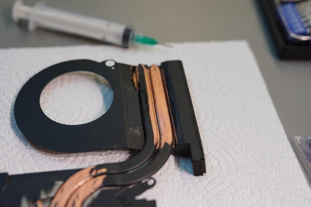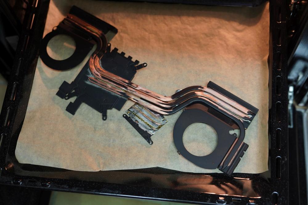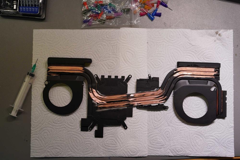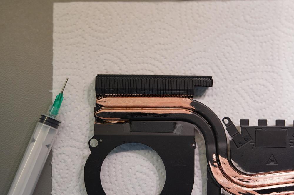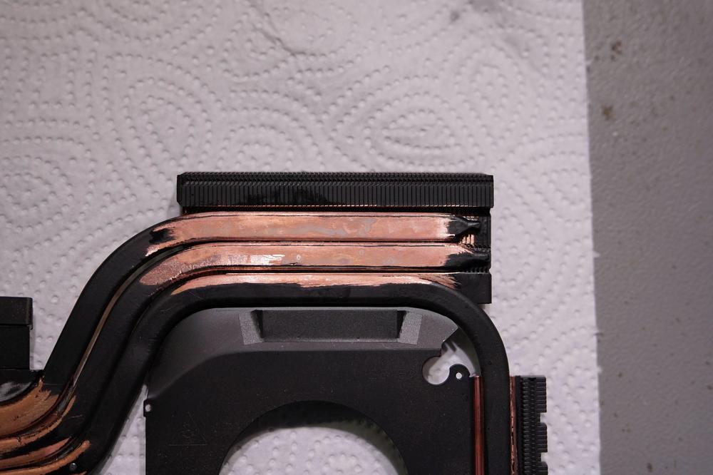 Hallo AW- Community, ich kann es kaum glauben. Mein letzter Beitrag war ziemlich genau vor einem Jahr... wie die Zeit verfliegt! Mein Projekt war eine ganze weile auf Eis gelegen. Unnötig aufzuzählen was alles los war. Es war viel Vor einiger Zeit habe ich endlich mein Projekt weitergeführt. Ein Arbeitskollege (ähnliches Bastlerherz wie ich, jedoch mit mehr Übung) und ich haben uns hingesetzt und es einfach mal gemacht. Zuerst erkläre ich mal was ich gemacht habe und dann kommen Bilder mit Beschreibungen dazu: Mein Plan war es die Wärmeübertragung zwischen Heatspreader und Heatpipe zu verbessern. Ebenso die Übertragung von Heatpipe auf die Kühleinheit. Die kleine Fläche mit der die Heatpipes angebracht sind waren in meinen Augen einfach nicht optimal gelöst. Mehr Metall muss da doch die Lösung sein?! Quasi die Heatpipes ringsherum in Lot betten, damit die Wärmeübertragung besser funktioniert. Nur wie? Nach vielen Recherchen und den tollen Tipps aus der Community, dann einen Plan aufgestellt: - Flüssiglötzinn besorgen, welches bei niedriger Temperatur reagiert (~170 °C) und das ganze mit einer art Spritze in die Lücken zwischen Heatpipes und Heatspreader/Kühleinheit aufbringen - Mein Arbeitskollege hatte noch einen alten Backofen im Keller rumstehen, der durch die Chemikalien nicht versaut werden kann. (Hier nochmal vielen Dank Daniel! ) - Heatsink ausgebaut und auf ein Backblech gelegt. Mal vorheizen auf 130 °C und dann anfangen 😋 (das war um rund 15 Uhr und nach Hause gefahren bin ich gegen 4 Uhr Nachts 🤓) Nun die Bilderstrecke: Bevor wir angefangen haben wollte ich den IST Stand festhalten. Mittlerweile weiß ich, dass man es anders macht mit HWinfo usw. Aber naja. Furmark und CPU-Z 100% Belastung auf CPU und GPU laufen lassen. Dabei 4,0 GHz auf alle Kerne bei -0,120 V UV. Lüfter laufen auf Performance Mode per BIOS. Laptop stand ohne Erhöhung o.ä. auf der Tischoberfläche. Die Roten Markierungen zeigen an, an welchen stellen das Flüssiglötzinn eingebracht werden sollte. Falls es jemanden interessiert wie LM nach über einem Jahr in einem AW 15R3 aussieht = Flüssig LM typische silberfarbene Verfärbung des Kupfers. Aber nicht schlimm. Vor dem Auftragen musste erst noch der schwarze Lack ab. Mit klassischem Werkzeug kommt man da nicht weit. Die Lösung war dann Dremel mit Schleifpapierrolle und ein Stück Federstahl (wer das nicht kennt, krasses Zeug. Damit ging es am besten) Man sieht die Kupferfarbenen Stellen, an denen ich mit dem Federstahl zwischen den Heatpipes gearbeitet habe. So sah es dann zum Schluss aus Auch der Dremel war eine enorme Hilfe Mit dieser Spritze habe ich das Material dann eingebracht Vor dem ganzen natürlich noch mit Zahnbürste und Isopropanol gereinigt. Ab gehts in den Ofen Erste Ladung einbringen Muss man gut schütteln das Zeug Kleiner Bilderbreak. Ab hier ging es dann bei 130 °C in den Ofen (kontrolliert durch Thermometer für den Grill) Und die Herausforderung begann 💥 Das Lötzeug vom Hersteller der Heatsink ist dermaßen Niedrigtemperatur, dass sich bei 130 °C fast alle Lötstellen gelöst hatten. Egal ob verschobene Heatpipes, Heatspreader, Kühlfinnen etc etc. Ich war kurz sprachlos und dachte: Jetzt ist das Teil im A**** (Eimer) 🤯 Naja, zum Glück war ich nicht alleine und mit viel Zeit, Geduld, Improvisationstalent, zwei Heißluftpistolen und Zeit und Geduld (ich wiederhole das mit Absicht, weil es so wichtig war) haben wir uns an die Arbeit gemacht und jede Heatpipe und jedes kleine Teil an die Richtige Position zu bringen, zu erwärmen und somit wieder zu reparieren... ich sag euch wir hatten viel zu tun... Bilderstrecke die 2. Das Ziel nicht aus den Augen verlieren: Lötzinn mit aufbringen und das Projekt beenden! Das Silberfarbene ist das Fertig verarbeitete Lötzinn. PS: Das Zeug dampft aus und spritzt teilweise! Höchste Vorsicht beim Nachmachen! (Falls jemand sich das antun will) Nach wirklich etlichen Stunden war es vollbracht... Darauf haben wir uns erstmal einen Drink genehmigt... abkühlen musste das ganze ja auch noch 🙂 Nach dem Reinigen und neuen auftragen von LM und WLPads wurde das gute Stück wieder eingebaut und getestet. (Nicht sehr ausführlich, aber das hatten wir ja schon) 100 % GPU und CPU Last, 4,0 GHz auf alle Kerne -0,120 V UV, Lüfter auf Max, Stand auf dem Tisch ohne Erhöhung etc. RESULTAT: Exakt die gleichen Temperaturen 🤬 Das Einzige was sich verändert hat ist, dass die Lüfter nicht mehr so Sprunghaft sind und die Temperatur eher schnell steigt, als sprunghaft auf 90 °C zu sein. Also ist die Kühlung vielleicht etwas träger geworden, da mehr Metall im Kühlapparat steckt. Ein Bild vom eingebauten Zustand bin ich euch noch schuldig... das reiche ich euch nach, wenn ich den Mod von @Sk0b0ld (Heatsink mit Passiven Kühlkörpern versehen und SSD + Chipsatz) durchführe. Alles in allem war es natürlich eine wahnsinnig aufregende Zeit von den ersten Hirngespinsten, bis Recherche, Materialsuche, wie mache ich das? und endlich mal MACHEN! Negative Spätfolgen kann ich bis jetzt keine Berichten. Mein AW läuft so seit Mitte April 2020 und hat nie zicken gemacht. Das einzige was mich nervt ist das Powerlimit der GPU, aber das ist ein anderes Thema... Ich hoffe mein Artikel war unterhaltsam und ich konnte einigen Leuten ein paar Flöhe in den Kopf setzen (aber bitte lernt aus meinen Schwierigkeiten! LG, chriskup5 Punkte