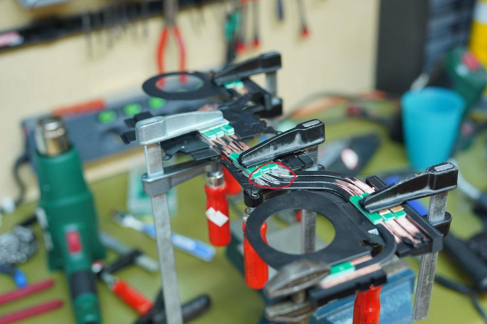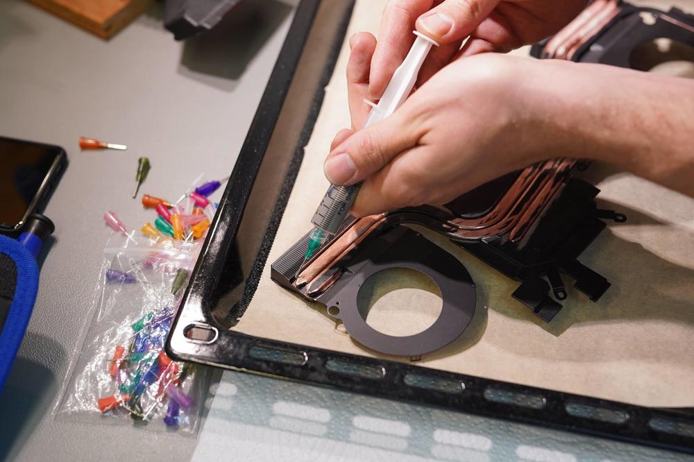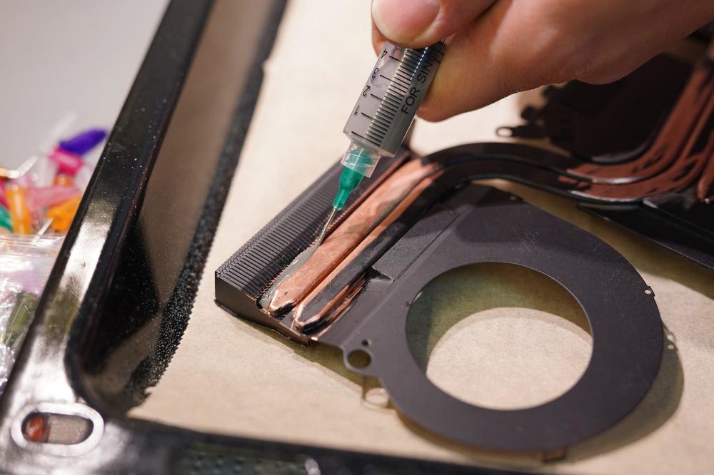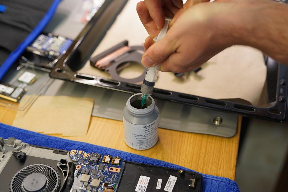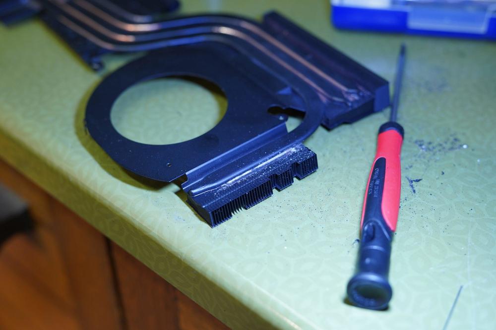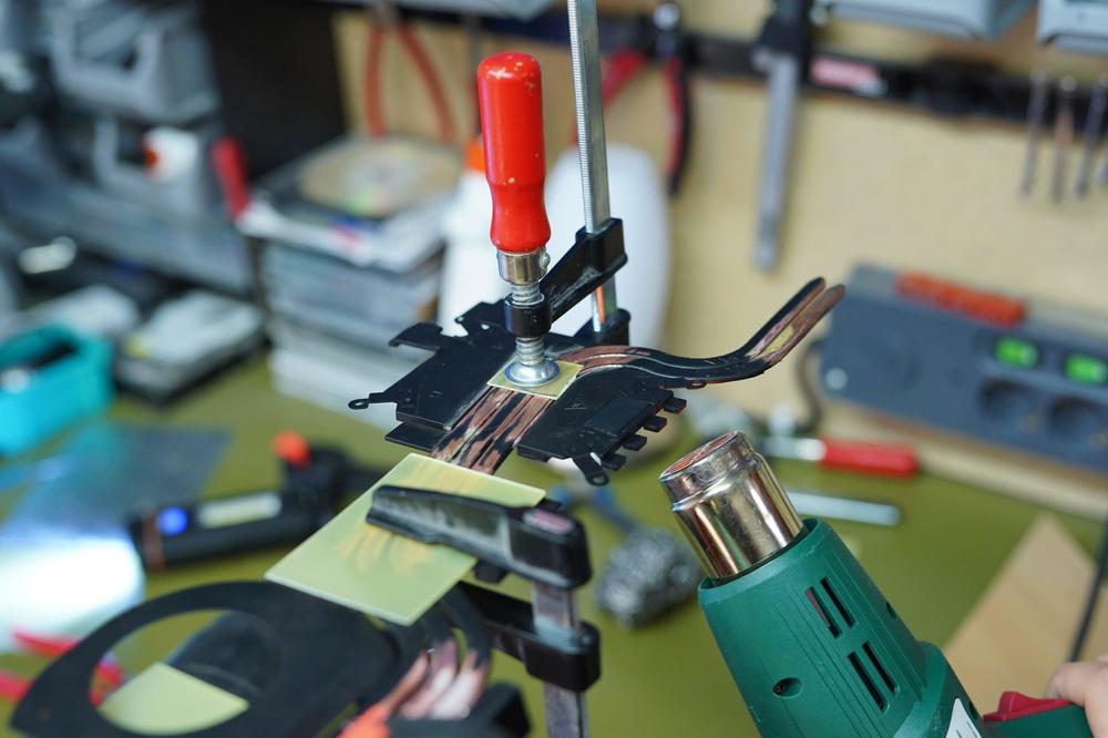 Hallo AW- Community, ich kann es kaum glauben. Mein letzter Beitrag war ziemlich genau vor einem Jahr... wie die Zeit verfliegt! Mein Projekt war eine ganze weile auf Eis gelegen. Unnötig aufzuzählen was alles los war. Es war viel Vor einiger Zeit habe ich endlich mein Projekt weitergeführt. Ein Arbeitskollege (ähnliches Bastlerherz wie ich, jedoch mit mehr Übung) und ich haben uns hingesetzt und es einfach mal gemacht. Zuerst erkläre ich mal was ich gemacht habe und dann kommen Bilder mit Beschreibungen dazu: Mein Plan war es die Wärmeübertragung zwischen Heatspreader und Heatpipe zu verbessern. Ebenso die Übertragung von Heatpipe auf die Kühleinheit. Die kleine Fläche mit der die Heatpipes angebracht sind waren in meinen Augen einfach nicht optimal gelöst. Mehr Metall muss da doch die Lösung sein?! Quasi die Heatpipes ringsherum in Lot betten, damit die Wärmeübertragung besser funktioniert. Nur wie? Nach vielen Recherchen und den tollen Tipps aus der Community, dann einen Plan aufgestellt: - Flüssiglötzinn besorgen, welches bei niedriger Temperatur reagiert (~170 °C) und das ganze mit einer art Spritze in die Lücken zwischen Heatpipes und Heatspreader/Kühleinheit aufbringen - Mein Arbeitskollege hatte noch einen alten Backofen im Keller rumstehen, der durch die Chemikalien nicht versaut werden kann. (Hier nochmal vielen Dank Daniel! ) - Heatsink ausgebaut und auf ein Backblech gelegt. Mal vorheizen auf 130 °C und dann anfangen 😋 (das war um rund 15 Uhr und nach Hause gefahren bin ich gegen 4 Uhr Nachts 🤓) Nun die Bilderstrecke: Bevor wir angefangen haben wollte ich den IST Stand festhalten. Mittlerweile weiß ich, dass man es anders macht mit HWinfo usw. Aber naja. Furmark und CPU-Z 100% Belastung auf CPU und GPU laufen lassen. Dabei 4,0 GHz auf alle Kerne bei -0,120 V UV. Lüfter laufen auf Performance Mode per BIOS. Laptop stand ohne Erhöhung o.ä. auf der Tischoberfläche. Die Roten Markierungen zeigen an, an welchen stellen das Flüssiglötzinn eingebracht werden sollte. Falls es jemanden interessiert wie LM nach über einem Jahr in einem AW 15R3 aussieht = Flüssig LM typische silberfarbene Verfärbung des Kupfers. Aber nicht schlimm. Vor dem Auftragen musste erst noch der schwarze Lack ab. Mit klassischem Werkzeug kommt man da nicht weit. Die Lösung war dann Dremel mit Schleifpapierrolle und ein Stück Federstahl (wer das nicht kennt, krasses Zeug. Damit ging es am besten) Man sieht die Kupferfarbenen Stellen, an denen ich mit dem Federstahl zwischen den Heatpipes gearbeitet habe. So sah es dann zum Schluss aus Auch der Dremel war eine enorme Hilfe Mit dieser Spritze habe ich das Material dann eingebracht Vor dem ganzen natürlich noch mit Zahnbürste und Isopropanol gereinigt. Ab gehts in den Ofen Erste Ladung einbringen Muss man gut schütteln das Zeug Kleiner Bilderbreak. Ab hier ging es dann bei 130 °C in den Ofen (kontrolliert durch Thermometer für den Grill) Und die Herausforderung begann 💥 Das Lötzeug vom Hersteller der Heatsink ist dermaßen Niedrigtemperatur, dass sich bei 130 °C fast alle Lötstellen gelöst hatten. Egal ob verschobene Heatpipes, Heatspreader, Kühlfinnen etc etc. Ich war kurz sprachlos und dachte: Jetzt ist das Teil im A**** (Eimer) 🤯 Naja, zum Glück war ich nicht alleine und mit viel Zeit, Geduld, Improvisationstalent, zwei Heißluftpistolen und Zeit und Geduld (ich wiederhole das mit Absicht, weil es so wichtig war) haben wir uns an die Arbeit gemacht und jede Heatpipe und jedes kleine Teil an die Richtige Position zu bringen, zu erwärmen und somit wieder zu reparieren... ich sag euch wir hatten viel zu tun... Bilderstrecke die 2. Das Ziel nicht aus den Augen verlieren: Lötzinn mit aufbringen und das Projekt beenden! Das Silberfarbene ist das Fertig verarbeitete Lötzinn. PS: Das Zeug dampft aus und spritzt teilweise! Höchste Vorsicht beim Nachmachen! (Falls jemand sich das antun will) Nach wirklich etlichen Stunden war es vollbracht... Darauf haben wir uns erstmal einen Drink genehmigt... abkühlen musste das ganze ja auch noch 🙂 Nach dem Reinigen und neuen auftragen von LM und WLPads wurde das gute Stück wieder eingebaut und getestet. (Nicht sehr ausführlich, aber das hatten wir ja schon) 100 % GPU und CPU Last, 4,0 GHz auf alle Kerne -0,120 V UV, Lüfter auf Max, Stand auf dem Tisch ohne Erhöhung etc. RESULTAT: Exakt die gleichen Temperaturen 🤬 Das Einzige was sich verändert hat ist, dass die Lüfter nicht mehr so Sprunghaft sind und die Temperatur eher schnell steigt, als sprunghaft auf 90 °C zu sein. Also ist die Kühlung vielleicht etwas träger geworden, da mehr Metall im Kühlapparat steckt. Ein Bild vom eingebauten Zustand bin ich euch noch schuldig... das reiche ich euch nach, wenn ich den Mod von @Sk0b0ld (Heatsink mit Passiven Kühlkörpern versehen und SSD + Chipsatz) durchführe. Alles in allem war es natürlich eine wahnsinnig aufregende Zeit von den ersten Hirngespinsten, bis Recherche, Materialsuche, wie mache ich das? und endlich mal MACHEN! Negative Spätfolgen kann ich bis jetzt keine Berichten. Mein AW läuft so seit Mitte April 2020 und hat nie zicken gemacht. Das einzige was mich nervt ist das Powerlimit der GPU, aber das ist ein anderes Thema... Ich hoffe mein Artikel war unterhaltsam und ich konnte einigen Leuten ein paar Flöhe in den Kopf setzen (aber bitte lernt aus meinen Schwierigkeiten! LG, chriskup5 Punkte