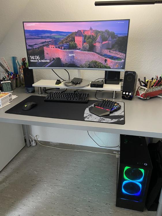 Getreu dem Motto habe ich mir dieses Jahr im März einen neuen Gaming PC gebaut und meinen aufgerüsteten Aurora R4 in Rente geschickt Hier mal die Komponenten: CPU: AMD Ryzen 7 3700X (291 €) Arbeitsspeicher: 32 GB DDR2-3200 CL16 (152 €) SSD: Samsung 970 Evo 1 TB (168 €) Mainboard: Asus PRIME X570-PRO (239 €) Gehäuse: NZXT H510 Elite Window Schwarz (154 €) CPU Kühler: Scythe Fuma 2 (49 €) 2 Noctua Chroma black Lüfter (50€) Gesamt: 1103 € Meine GTX 1080, ein Corsair RM750x Netzteil und eine 740 GB SATA SSD habe ich aus dem Aurora in meinen neuen PC mitgenommnen. Als Monitor habe ich den Samsung CF791 (34 Zoll Ultra Wide, Curved, VA Panel, 3440x1440, 100 HZ), als Maus die Racer Viper Ultimate und als Keyboard das CM Storm Rapid-I. Die genaue Liste der neuen Teile gibt es hier. Wahl der Komponenten: Am wichtigsten für mich war das Gehäuse. Es sollte kompakt sein, ein ATX Mainboard unterbringen, Glas Seitenteil + RGB und einen USB-C 3.2 Front Anschluss haben. Mit den Kriterien ist mir nicht viel mehr viel Auswahl geblieben . Das NZXT Gehäuse ist rechteckig und schlicht, hat vorne und an der linken Seite Glaswände und kommt mit 2 140 mm LED Lüfter vorne und einer LED Leiste innen am Gehäusedach. Zusätzlich ist ein LED und Lüfter Controller verbaut, der alles steuert. Letztendlich bin ich mit dem NZXT Gehäuse zufrieden, was mir nicht gefällt schreibe ich weiter unten. Bei der CPU habe ich mich bewusst für 8 Kerne und AMD Entschieden. AMD wegen P/L und 8 Kerne, da ich mit dem PC nur zocken will und 12 oder 16 Kerne nicht nutzen werde. Es hätten auch 6 Kerne gereicht, die hatte ich aber schon in meinem Aurora, das ging dann natürlich nicht . Das Mainboard war eine schwierige Wahl, letztendlich sollte es auch RGB haben und einen USB-C 3.2 Front Header. Die X570 Plattform wegen Zukunftssicherheit und PCIe 4.0. Das Asus Board ist super, aber die LEDs nutze ich wegen der Software nicht und mein Gehäuse leuchtet auch so bunt genug. Beim Arbeitsspeicher haben ich mit 3200 MHz ein Kompromiss zwischen Geschwindigkeit und Preis gefunden. Schnellerer RAM war deutlich teurer. Hier habe ich aber eins gelernt: immer die RAM-Kompatibilitätsliste des Mainbaords beachten! Das habe ich nicht gemacht und eines der wenigen RAM Kits erwischt, die nicht kompatibel sind... Nach ein paar Mainboard Updates bootet aber alles mit XMP Profil. Die SSD war recht simpel. Auch wenn ich die Geschwindigkeit nicht brauche ist Samsung doch für Qualität bekannt. Eine 750 GB SATA SSD habe ich aus meinem Aurora übernommen. Der CPU Lüfter war auch eine leichte Wahl. Ähnliche Leistung wie der 120m Noctua Kühler mit 2 Lüftern, aber nur der halbe Preis und ein (wie ich finde) schickeres Design. Die Montage war recht einfach und die CPU Temperaturen in meinem Gehäuse sind gut. Meine GTX 1080 ist immer noch flott und die RTX 2080 Super war einfach nicht super genug. Das hat sich mit der RTX 3080 geändert, es könnte sich also noch was tun . Was mir nicht gefällt: Zunächst zum Gehäuse. Dadurch, dass die Front aus Glas ist, kann Luft nur durch einen Spalt an der Seite und unten ins Gehäuse kommen. Die Lüftung war wohl so schlecht, dass NZXT neben den beiden 140 mm Frontlüftern noch einen 120 mm Lüfter hinten und einen 140 mm Lüfter oben verbaut hat. Die beiden Lüfter hinten und oben waren mir zu laut, deshalb habe ich sie gegen zwei Noctua Chroma Black getauscht. Mit der richtigen Lüfterkurve für die Lüfter vorne, hinten und oben funktioniert es aktuell aber gut. Wenn die Lüfter schnell drehen hört man ein pulsierendes Brummen. Es bildet sich ein Unterdruck im Gehäuse, da nicht genug Luft nach kommt. Hier kann ich mir gut vorstellen, dass ein gelochtes Blech mit Luftfilter anstatt dem Glas in der Front Abhilfe schaffen kann. Der zweite Kritikpunkt ist die Lüfter/LED Steuereinheit. Die Software dazu lässt sich gut bedienen, es kommen aber oft Updates und wenn ein Update installiert wird drehen die Lüfter immer auf max. Das nervt. Was aber noch mehr nervt: immer wenn ich den PC vom Netz nehme vergisst die Steuereinheit meine Lüfterkurve und LED Einstellung?! Man kann also die NZXT Software nicht aus dem Autostart nehmen wenn man regelmäßig den PC vom Strom trennt... Zum Mainboard: die Asus Software zum steuern der LEDs ist mies. Lahm, gamery Design und buggy. Das Mainboard an sich läuft stabil, aber wegen der LED Komponente braucht man Asus nicht zu kaufen (angekommen andere Asus Boards habe die selbe Software). Fazit: Nach einigen Problemen mit dem RAM und der Lüftersteuerung habe ich mir ein schicken und flotten PC zusammen gebaut. Klar, es ist nicht der schnellste PC, aber ich habe darauf geachtet qualitativ hochwertig Komponenten zu verbauen und für meine Anwendungen eine gute Leistung zu bekommen. Auch habe ich wieder viel gelernt was aktuelle Hardware angeht mein letzter Eigenbau ist doch schon ein paar Jahre her und es hat sich einiges getan. Ein Problem bleibt aber, das Kabelmanagement Was meint ihr zu meinem PC? Teilt auch gerne euren selbst gebauten PC6 Punkte