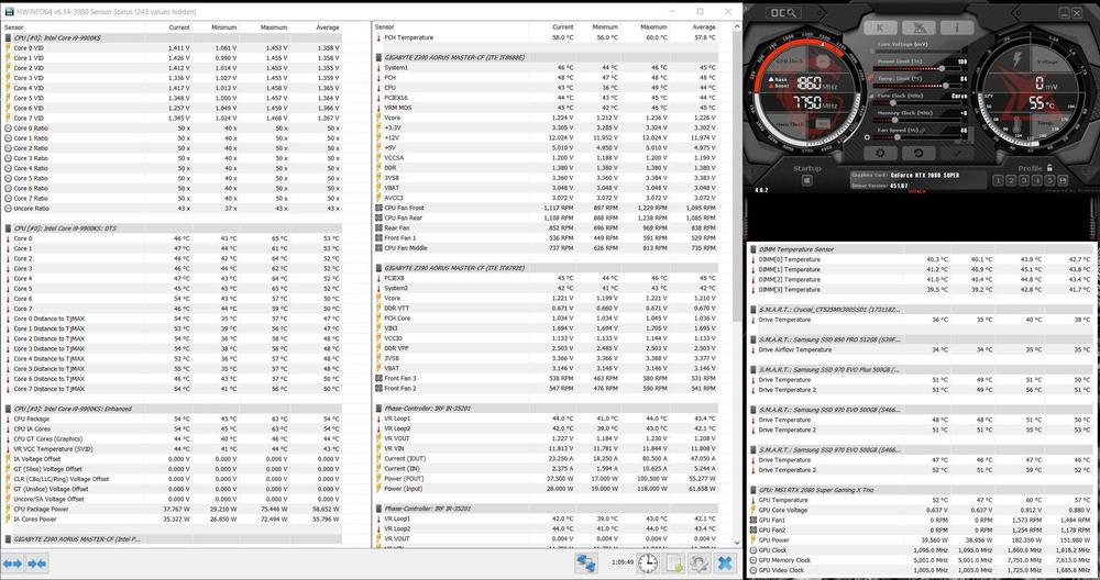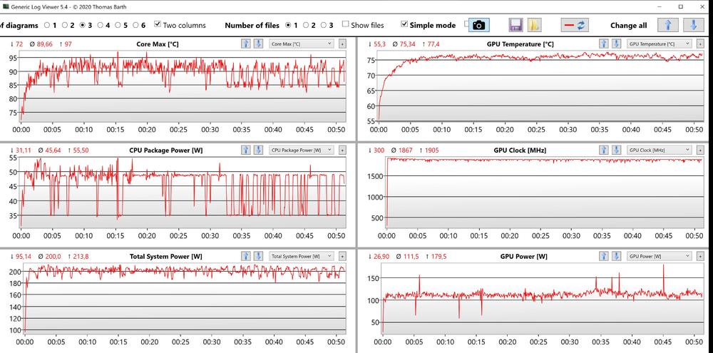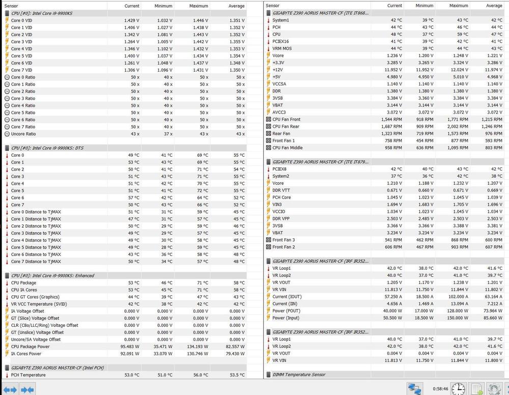 In der Vergangenheit kam es regelmäßig vor, dass Fragen mit irgendwelchen Temperatur- oder Taktwerten gestellt wurden. Um auf die Fragen gezielt eingehen zu können und überhaupt das ganze irgendwie sinnvoll zu bewerten, bedarf es oft weiterer Informationen. Ein dafür äußerst hilfreiches Tool ist HWinfo64. Damit lässt sich fast alles überwachen und das meiste bequem einstellen. Aus meiner Sicht ein Must-Have Tool, was auf keinem Rechner fehlen darf. Die Vergangenheit hat auch gezeigt, dass einige User mit dem Umgang Probleme haben oder bestimmte Werte falsch interpretiert werden. Deshalb wurde es schon lange Zeit für den HWinfo-Thread. 1. Installation Nicht selten kam die Frage auf: "Was muss ich auswählen?/ Welche Version muss ich nehmen?". Daher nehme diesen Punkt jetzt mal mit auf. Die Software lässt sich kostenlos auf der HWinfo-Homepage, im Download-Bereich runterladen. Die Version, die ich dafür immer nehme, ist Local (U.S.). Zur Installation gibt es nicht viel zu sagen. Ist halt eine Standard-Installation, wo man eigentlich nichts falsch machen kann. 2. Ansicht-Modus, Layout und Einstellungen Anfangs können einem die vielen Ansichtsmöglichkeiten, Einstellungen und Werte erschlagen und man weiß gar nicht wo anfangen soll. Gerade wenn sich das Layout im "Sensors only" noch in der Default-Ansicht befindet und einfach alles angezeigt wird. Ich gehe auf jede Ansicht kurz ein und nenne einige Gründe, wann welche Ansicht zu empfehlen ist. 2.1 Ansicht "all" Sobald man HWinfo installiert hat und es startet, fragt das Tool in welcher Ansicht man sich die Daten anzeigen lassen will. Wählt man gar nichts aus bzw. schränkt nichts ein, sprich keinen Haken bei Summary only und Sensors only, wird eine erweiterte Summary-Ansicht angezeigt. Das ganze sieht dann so aus: Man hat verschiedene Fenster, wo sich verschiedene Informationen ablesen lassen. Gerade die linke Anzeige kann sehr hilfreich sein, wenn man beispielsweise wissen möchte, welches Display man verbaut hat (sehr beliebte Frage bei Area51m) oder Detailinformationen über den RAM. 2.2 Ansicht "Summary only" Diese Ansicht ist eine Zusammenfassung (engl. Summary) aller wichtigen Daten. Bedeutet, welche CPU, GPU, welcher RAM, welche Festplatten-Konfig usw. ist verbaut + ein kleines Fenster, was die CPU so treibt. Ein beliebtes Beispiel, wo die angezeigten Informationen falsch interpretiert werden, ist der Arbeitsspeicher. Die Ansicht zeigt hier zwei Werte: Punkt 1 bezieht sich dabei nur auf den RAM und welche Profile auf seinem SPD-Chip hinterlegt sind. Das hat erstmal rein gar nichts damit zu tun, wie der Speicher im Notebook arbeitet. Man kann es mit den m.2 SSDs vergleichen. Nur weil 500 GB angezeigt werden, heißt es nicht, dass auch 500GB belegt sind. Genau dafür gibt es Punkt 2. Hier wird angezeigt, wie der eingesetzte RAM im Notebook arbeitet und welches Profil angelegt ist. In meinem Fall taktet der RAM auf 2.666 MHz mit den entsprechenden Timings. Der Takt wird oft als "Hälfte (1.333)" angezeigt und muss mal zwei multipliziert werden. Der Grund dafür ist, dass ein DDR = Double Data Rate Speicher zwei Signale pro Taktzyklus anlegt. Im Area51m, wo der RAM maximal auf 2.400 MHz läuft, steht dann dementsprechend der Taktwert auf 1.200 Mhz. 2.3 Ansicht "Sensors only" Hierbei handelt es sich über detaillierte Ansicht aller Sensoren und Werte mit Zeitangabe. Aus meiner Sicht, ist das die wichtigste Ansicht, da sich hier viele Rückschlüsse ziehen und Fehler, hohe Temperaturen, Leistung usw. gut bewerten lassen. Um diese Ansicht zu starten, einfach auf "Sensors only" klicken und Run. Anfangs im Standard-Layout bekommt man eine unübersichtliche Vielzahl an Informationen angezeigt. In der Regel braucht man nie derart viele Informationen. Glücklicherweise bietet HWinfo die Möglichkeit das Layout nach seinen Wünschen zu gestalten. Für die Temperatur- und Leistungsbewertung habe ich mein Layout wie folgt angepasst: Damit die Ansicht am Ende so aussieht, kann man mit Rechtsklick --> Kontextmenü --> "Hide" viele Werte ausblenden, die man nicht braucht. Mit "Rename" kann man die Werte umbenennen. Je nach Model, werden die Lüfter mal angezeigt und mal nicht. Werden die Lüfter nicht angezeigt, hat man die Möglichkeit über die Settings, zweiter Reiter Safety, durch das Deaktivieren des EC Supports, dass die Lüfter angezeigt werden. Soweit mir bekannt, ist das nur beim Area51m so. Beim AW17 R4/ R5 werden die Lüfter von Anfang an erkannt und tauchen auch in der Ansicht auf. Beim m15 & m17 R1 habe ich es nicht geschafft, dass mir die Lüfter angezeigt werden. Das liegt höchstwahrscheinlich daran, dass speziell Notebook-Mainboards "nicht bekannte" Controller einsetzen und HWinfo keine Informationen darüber bekommt oder diese nicht richtig interpretieren/ auslesen kann. Manchmal hilft ein Ausprobieren mit verschiedenen Einstellungen. Wo die Lüfter ebenfalls nicht anzeigt werden, ist wenn man HWinfo startet, die Lüfter aber still stehen (0 rpm). Sobald die Lüfter anlaufen wird ein Signal (rpm) ausgegeben und HWinfo führt sie dann in der Liste auf. Das kommt oft vor, wenn man sein Notebook im idle mit einem Kühler betreibt. 3. Verstehen Leistungsangaben und Temperaturwerte stehen unmittelbar mit anderen Faktoren im Verhältnis. Möchte man beispielsweise Temperaturen bewerten, so sind andere Werte ebenso zu berücksichtigen. Deshalb sind Antworten auf allgemeine Fragen wie "...sind die Temperaturen in Ordnung?" ohne Angabe weiterer Faktoren, die damit zusammenhängen, höchstens eine gutgemeinte Schätzung. Wenn man sein Layout mit "hide" und "rename" angepasst hat, sind folgende Werte mindestens zu empfehlen: 3.1 Verstehen der Werte Ganz oben in der Leiste finden sich verschiedene Angaben zur Zeiterfassung: Current: Aktueller Wert Minimum: Kleinster Wert in der gemessen Zeit Maximum: Höchster Wert in der gemessen Zeit Average: Durchschnittlicher Wert in der gemessen Zeit Punkt 1: Clock-Ratio Hierbei handelt es si