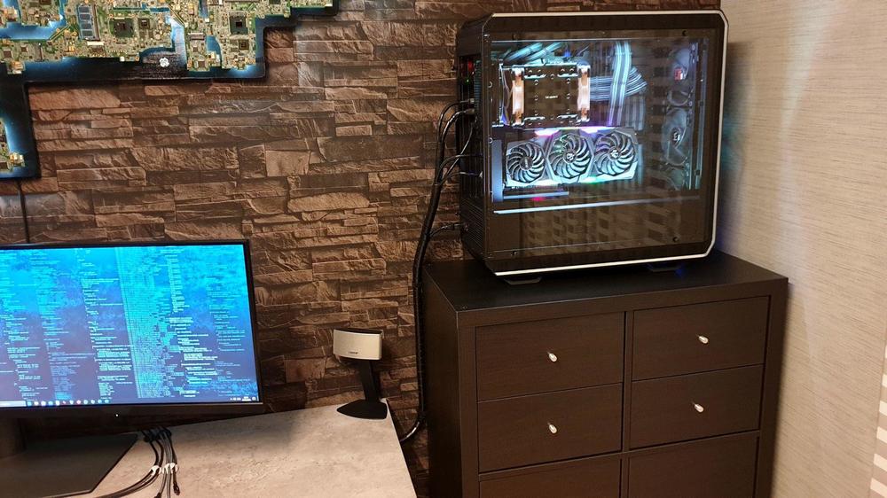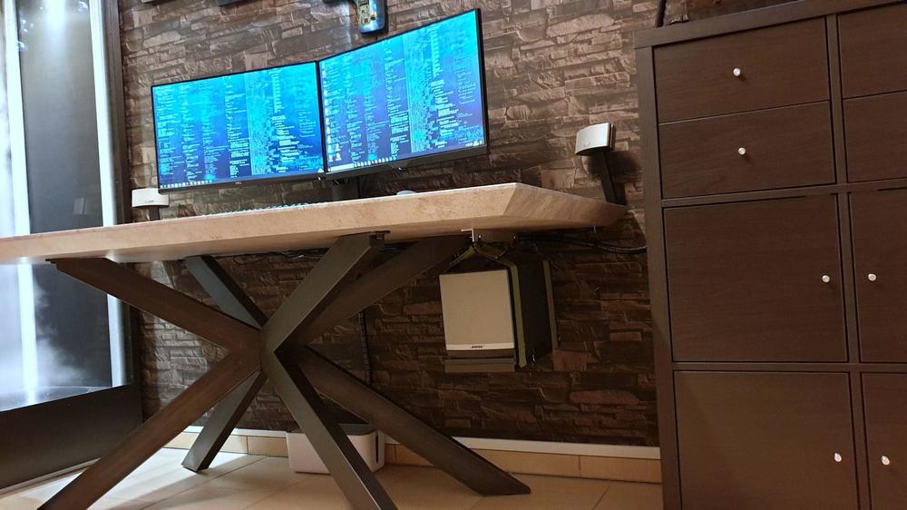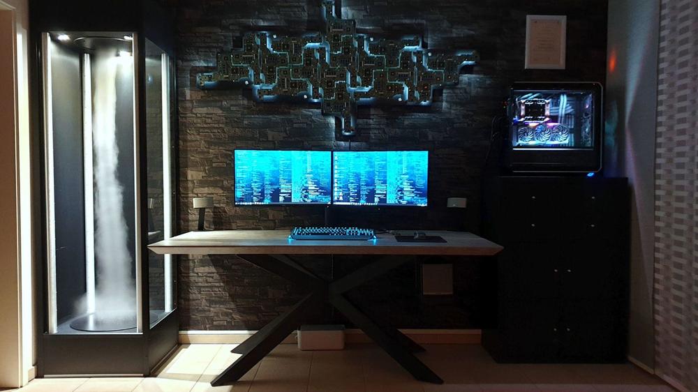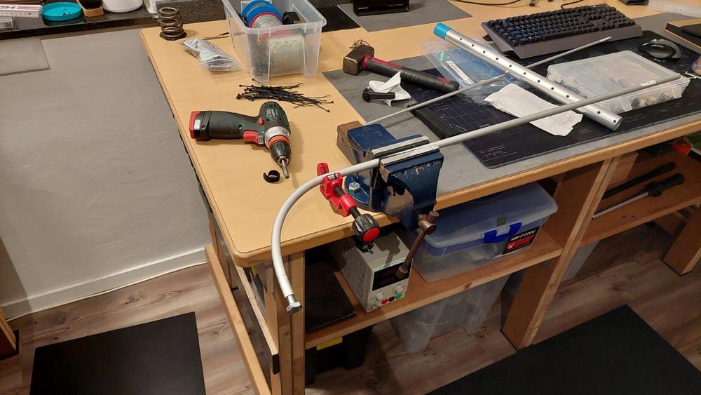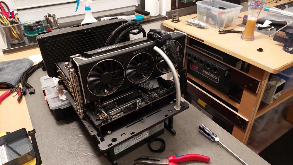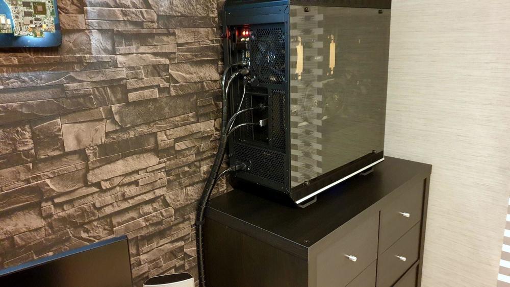Zum einen mit den drei Streben links, die erstaunlicher mehr Halt geben als gedacht und zum anderem mit einem selbst angefertigtem Anti-Sag-Mount. Hab halt drei Streben genommen, um die maximale Stabilität zu erreichen. Ich wusste aber schon vor dem Kauf, dass eine Lösung gegen GPU-Sag bei diesem "Gehäuse" definitiv ein Problem werden wird. Insbesondere bei der langen und schweren Karte, die ich habe. Letztendlich dachte ich mir, dass mir schon eine passende Lösung einfallen wird, wenn ich das Case zu Hause habe. Für den Anti-Sag-Mount habe ich dann ein 12mm dickes Aluminiumrohr genommen, es auf den passenden Winkel gebogen, ein Gewinde oben und unten reingeschnitten und schwarz lackiert. Das Teil ist so stabil, das hält die GPU mit Leichtigkeit alleine. Bin jedenfalls sehr zufrieden damit. Auch Standfüße gegen das nach vorne Kippen musste ich mir anfertigen. Das war jetzt aber weniger ein Problem. Hab jetzt die Tage noch ein wenig Beleuchtung montiert und bin soweit jetzt erstmal fertig. Bin sehr zufrieden mit dem Gehäuse. Ist einfach mal was anderes und nimmt nur sehr wenig Platz ein. Leise ist es auch, da kaum Lüfter verbaut sind.6 Punkte