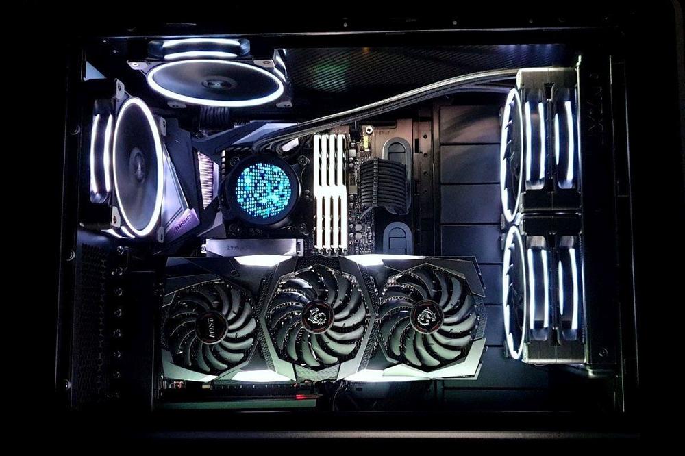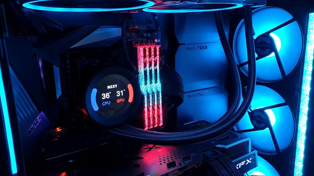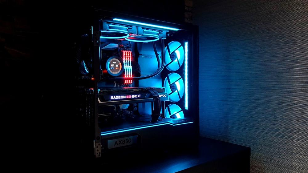 Du hast ja einen echt guten Durchlauf an neuen Grafikkarten. Ich will dich von deinem Vorhaben nicht abbringen, aber käme eine 3080Ti für dich nicht in Frage? Auf welcher Auflösung spielst du eigentlich? @Silentfan, sehe ich genau so. Benchen am PC finde ich etwas langweilig, zumindest unter normalen (nicht-LN2) Bedinungen. Man schraubt ein paar Regler hoch, schmeißt die Kühlung an und guckt wie man durch den Benchmark kommt. Zumal die Benchmarkdaten der GPUs nahezu alle bekannt sind und mit OC, selbst unter Wasser, nicht all zu viel zu holen ist. Verstehe auch nicht wie man sich über 5% Mehrleistung bei 100w+ freuen kann... Für mich macht das Optimieren, Under-/Downvolten da deutlich mehr Spass und ist aus meiner Sicht auch viel interessanter. Aktuell finde ich RAM übertakten/ optimieren wohl noch ganz interessant, da man hier für ein gutes Setting teilweise sehr lange braucht. Hab mein 4x 8GB Kit auf 4.133 Mhz bei etwas strafferen Timings CL16-17-17-32 laufen. Hatte vorher auch 4.266 MHz bei CL17-17-17-34 laufen, hatte jedoch hin und wieder Fehler (wahrscheinlich VDDR zu niedrig). Die Samsung B-Die's machen wirklich Spaß und haben sehr viel Headroom. Falls da einer mitmachen möchte, meine OC-Werte sehen wie folgt aus: Ist an sich nichts besonderes, einfach ein leicht optimiertes Setting für daily usage. OC-technsich geht da noch deutlich mehr. Wie wir alle wissen, bringt mehr RGB auch mehr FPS. Also habe ich die Feiertage und das schlechte Wetter genutzt und analog zur Weihnachtsbaumbeleuchtung, die RGB-Belechtung im Gehäuse erweitert. So schaut das ganze aus:5 Punkte