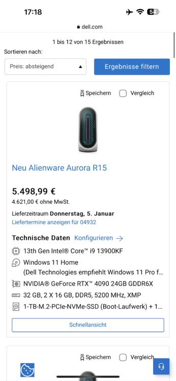servus, habe mir direkt am 06.12 den Aurora R15 mit dem 13900 und der 4090 bestellt. Liefertermin wäre der 12.12 - 20.12 gewesen… nun steht da es verzögert sich die Bestellung und wird auf den 30.12 datiert. Sehr ärgerlich… wenn man sich den PC auswählt und zusammenstellt steht nix von einer Verzögerung . hat jemand das neue system bestellt und weiß manchmal mehr? die laptops kommen aus china bzw werden dort gefertigt, der versand dauert lange . ist das beim aurora auch so oder werden die in polen gefertigt? mfg