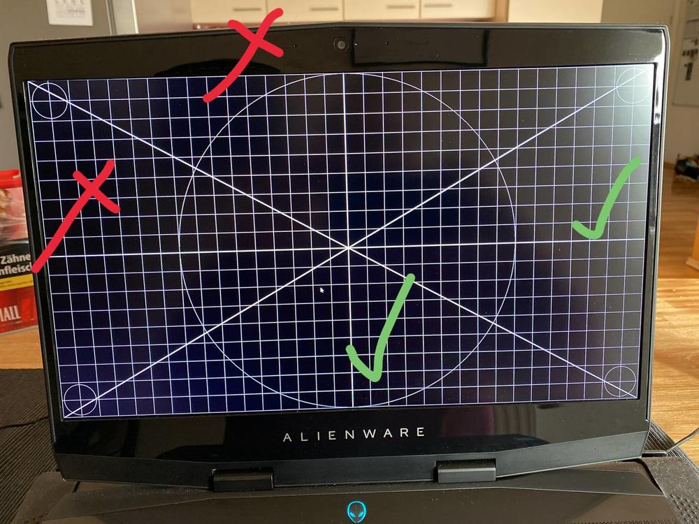 1. Hallo liebe Alienware Community, dies ist mein erster Beitrag hier. Ich bitte um Nachsicht für etwaige erste Anlaufschwierigkeiten. Ich befinde mich seit mehreren Wochen auf der Suche nach der Lösung eines Bildschirm-Skalierungsproblems und komme allmählich an meine Grenzen. Ich besitze ein Alienware Notebook - M15 R1 (2019) mit einem i9er 8950HK CPU, RTX 2080 M und 16 GB Ram. Falls ihr weitere Infos braucht, bitte bescheid geben. Nun zum eigentliche Problem... Ich habe bemerkt, dass über die Jahre hinweg sich mein Bildschirm anscheinend vom Rand verabschiedet hat. Ergo => Bildschirmskalierung / Panelskalierung stimmt nicht mehr. Bei einem normalen Monitor, würde ich auf die "Auto" Taste drücken damit sich die Ränder wieder automatisch anpassen. Bei einem Laptop stellt mich das vor eine Herausforderung. Treiber sind aktuell und mehrfach neu installiert. Das System habe ich auch schon einmal komplett neu aufgesetzt. Wirkliche Tools zu diesem Thema finde ich nicht. Die Nvidia und Intel Grafiksystemsteuerungen helfen mir auch nicht weiter. Habt ihr eine Idee, wie ich die Skalierung anpassen kann?? Gibt es hier Möglichkeiten?? Ich meine.... das muss doch irgendwie funktioneren? Anbei zwei Bilder. Es mag nicht wirklich nach viel aussehen, stört mich aber ungemeint. Bitte um Hilfe! Danke