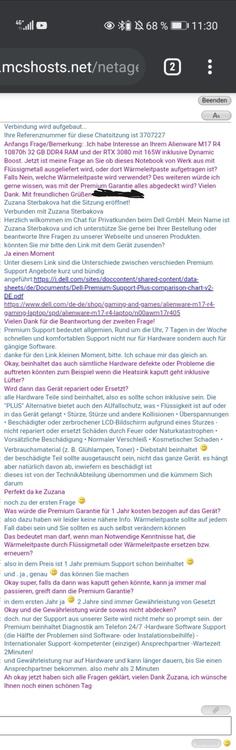 Ich würde das Thema gerne nochmal hochholen und hänge den heutigen Verlauf des Chats mit an. Ich habe folgendes Szenario, Alienware m17 r4 rtx 3080 auf Kleinanzeigen gekauft und mit Paypal Käuferschutz bezahlt. Der Verkäufer hat gesagt er habe keinen Repaste vorgenommen, das Gerät ist 4 Monate alt. Ich habe das Gerät bekommen und habe festgestellt, dass das Gerät eine viel zu hohe Temperatur im Idle und unter Last hat. Daraufhin habe ich dann nachgeschaut und festgestellt er hat Flüssigmetall nur auf der DIE aufgetragen, nicht beidseitig und zudem noch viel zu wenig. Er meint natürlich er hätte am Gerät kein Flüssigmetall aufgetragen. Die Frage ist jetzt, wenn ich die Premium Garantie besitze, habe ob Dell die Heatsink mit dem LM tauschen würde? Was kann ich wegen des Verkäufers unternehmen? Man sieht natürlich bei der GPU unter dem Kaptonband die Reste von der alten Wärmeleitpaste.