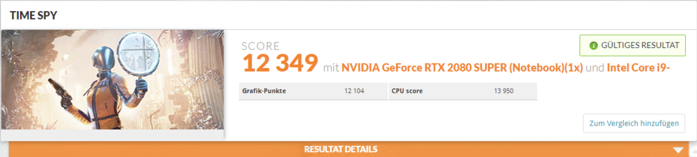 Mein R2 hat maximal Ausstattung. 2080s und 10900k mit 3200er Ram. Quiet ist wirklich leise für einen Laptop. Gedrosselt wird da nichts, zumindest nicht so dass der Takt pauschal in dem Profil niedriger gesetzt wird. Nur die Temperatur-Limits sind niedriger. Normalerweise taktet die Grafikkarte erst ab 84 Grad langsam runter. Im quiet Profil ab 74 Grad. Da die Lüfter leiser laufen erreicht sie das relativ zügig und drosselt dann leicht den Takt bis die Temperatur gehalten werden kann. CPU gibt auch im quiet Profil Vollgas. Heißt die wird heiß. Ich Drossel die CPU mit TS immer auf 4.2ghz damit die kühl bleibt in dem Modus. Timespy und cp2077 kann ich dir morgen früh mal anwerfen. Der timespy von dem Verkäufer sollte passen. Hier meiner: -