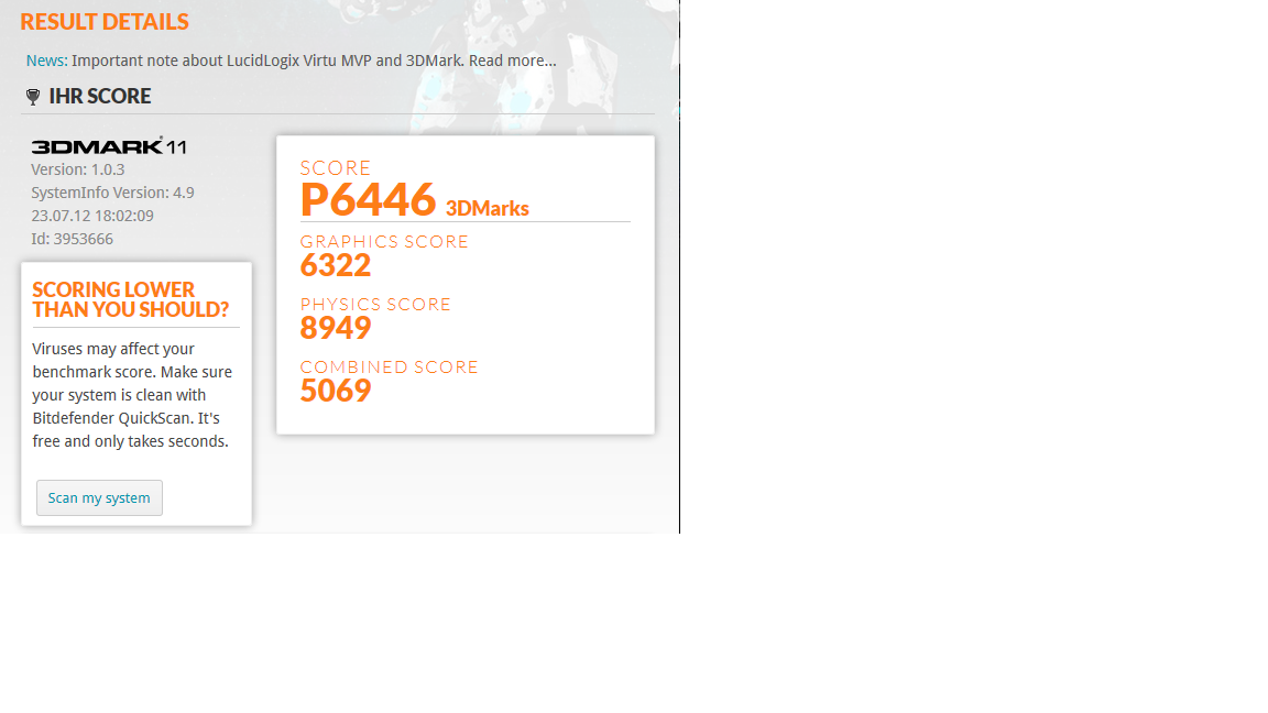 Hi Leute! Also ich habe seit heute ebenfalls endlich meinen neuen M17 R4 mit GTX 680M. Unten angefügtese Bild zeigt mein Ergebnis. Habe den 3.04 Treiber und neues Bios! Sonst habe ich nichts geändert (Kein OC o.ä.) Ist das sehr gut oder stink normal?? (Habe keinen Plan von 3DMark11) ( Passt nicht ganz hier hin, ich weis: Habe bisher nur ein Problem: Meine Funk- Maus funktioniert an allen USB-Ports, doch keine einzige Externe funktioniert. Also Sie lassen sich alle anschließen, aber sobald ich was rüber ziehen will, wird sie entkoppelt.... Woran lag das nochmal? habe iwas im Forum gelesen, finds aber nicht mehr) Vlg Elebogenbill -