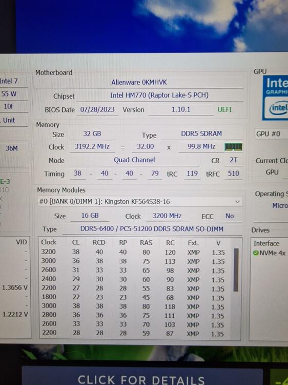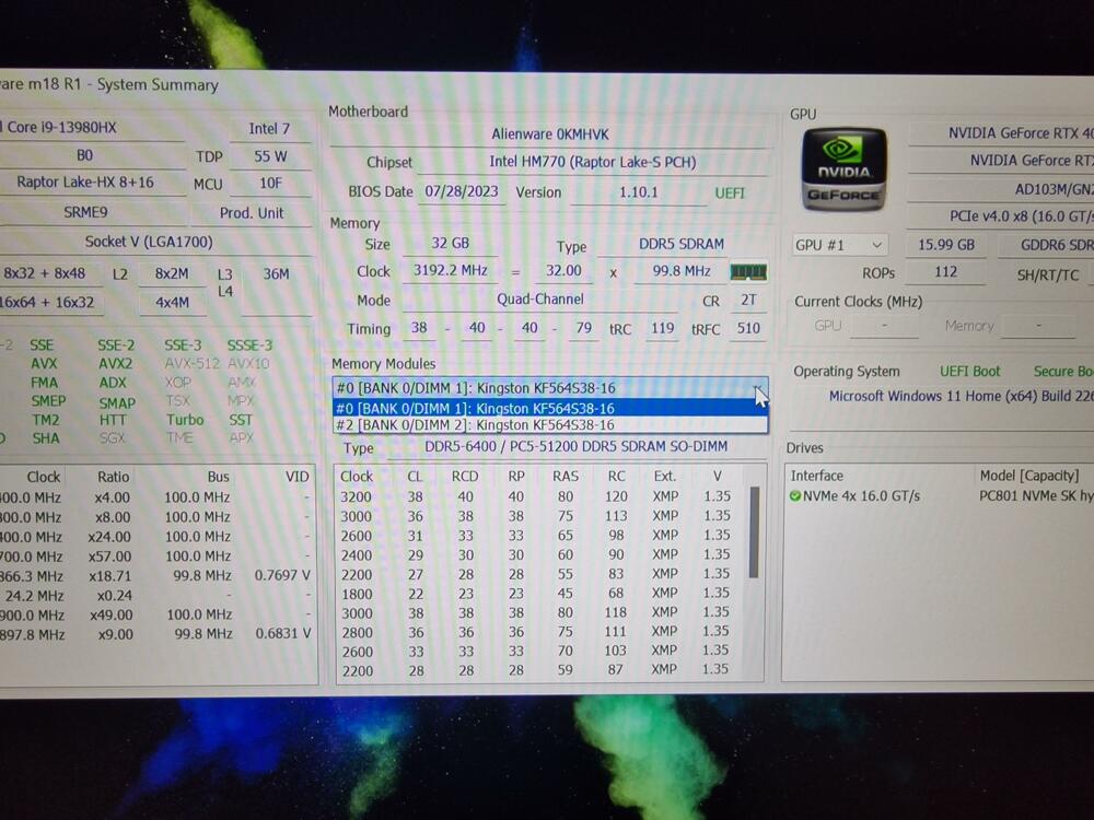 4. Ich habe meinen ersten Laptop AW m18 (13980HX, RTX 4090) bekommen und ihn erst nach 14-tägigen Rückgabefrist getestet (weil ich im Urlaub war). Die P-Kerne sind auch bei mäßiger Belastung im Throtteling. Im CB R23 erreiche ich von 25k bis 27k Punkte und die CPU Frequenz ist ständig ca. 3400 MHz, bei 120W. UV mit -110mV hat sehr wenig geholfen, bei -120mV hatte ich beim Start vom CB R23 sofort ein Neustart, also nicht stabil. Ich habe den Dell Support kontaktiert und die Reparatur wurde auf 30.07. wg fehlender Teile verschoben. Wenn ich auf "Teile anzeigen" klicke, wird das angezeigt: ---- ASSY Heatsink 0 ---- Service Kit Heatsink, Also Ship, Mylar, THM 0 ---- PAD,THRM INTFC CLNG,SINGLE 1 ---- Fan, Small, 3rd, Cooling fan for DIMM 0 Soll ich weiter mit UV probieren, um die Zeit zu "überbrücken"? Ich muss sagen, es ist kein gutes Gefühl einen nagelneuen Laptop reparieren lassen zu müssen.