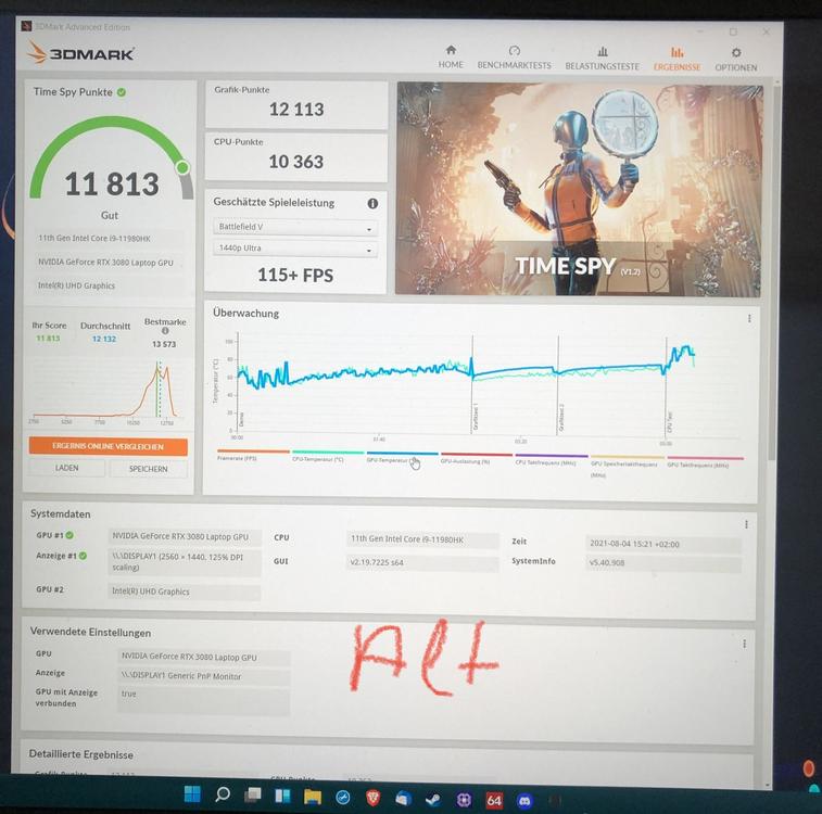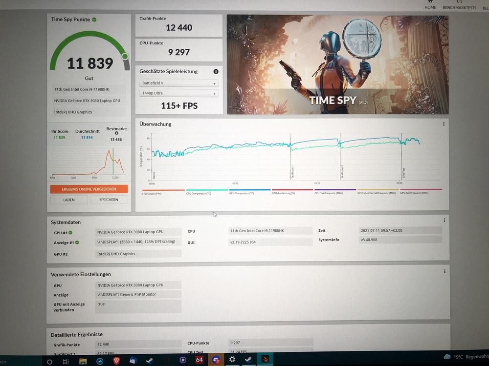 6. Mit Undervolting -65mV, CPU 4.3GHZ, GPU 100/200MHZ, internes Display, XMP in Bios aktiviert. Bin ziemlich zufrieden sind fast 500 Punkte mehr als vorher bei mir damit.
