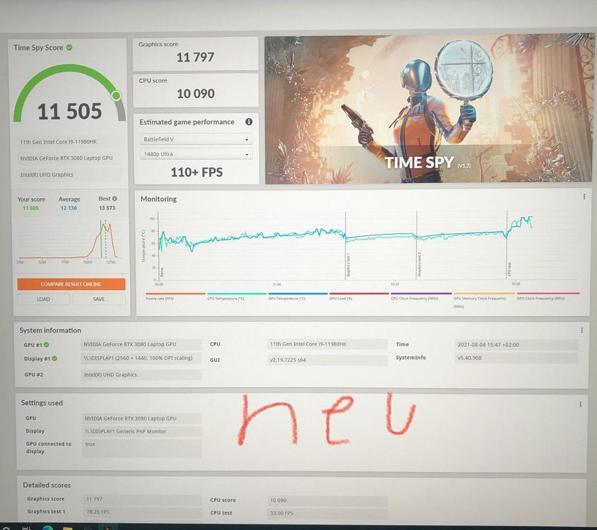 5. Sag mal, eine kurze Frage. Ich hab einen zweiten Laptop zugeschickt bekommen, da beim ersten sowohl der Bildschirm, als auch Tastatur was gemacht werden müsste. Hier die werte vom alten und vom neuen Laptop. Sind die Temperaturen so okay mit der Spitze auf 100° am Schluss? Merkt man die etwas geringere Leistung in Spielen vom neuen Laptop?