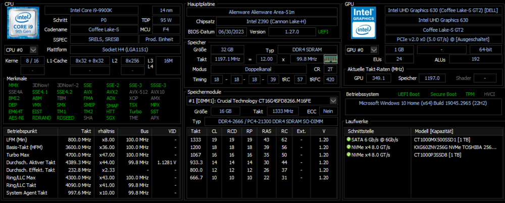 Guten Morgen zusammen, diese Woche werde ich meinen Alien nochmal neu aufsetzten, nehme wieder Windows 11. Zunächst mache ich mir noch ein Systemabbild mit gerade gut laufendem Windows 10. Wegen UV, OC, etc, ich bin die letzte paar Jahre mit AWCC gut unterwegs gewesen und diese Einstellung des Prozessors hatten gute Dienste geleistet. Der Rechner war meistens leise und die Leistung hat dicke gereicht für mich. Eins muss ich noch zugeben, die letzte Wochen hatte ich in AWCC ständig die Meldung: "Es wurden neue Komponente Installiert. System muss neu gestartet werden" ..... den genauen Text weiß ich gerade nicht mehr.... nach neu starten war die Meldung immer noch da.... habe dies bisher ignoriert...... na ja, jetzt nach der Neuinstallation ist diese Meldung verschwunden -