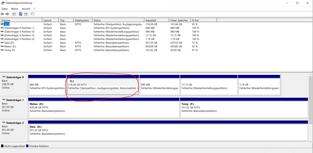 Guten Morgen, bei Neuinstallation von Windows habe ich schon den "Laufwerk1 Partition 3; OS" formatiert ...... reicht das ? Siehe hier das schlechte Bild 🙈 Hier nochmal die Übersicht meiner Festplatten. Muss / kann man die kleine Partitionen vom "Datenträger 0" löschen ? Diese sind wahrscheinlich noch original von Dell angelegt. @Svencore sehe ich das auch so, dass die Kiste ohne AWCC "flutschen" soll,.... allerdings hatte ich das Gefühl, dass erst mit dem AWCC und dazu passenden Einstellungen, hat die Kiste wieder Schwung bekommen. Aber dennoch zunächst ohne AWCC und mit Windows 10. Nein, ich müsste eine Installationsliste für dich erst erarbeiten, was fertiges gibt es da nicht. Aber das dauert etwas. Wenn du das wirklich möchtest mache ich das, aber dazu brauche ich Zeit und auch Lust. Von daher mache ruhig mal Pause . @Jörg dass kann ich nicht verlangen 🙂 ... ich versuche mich an die alte Reihenfolge von meinem alten Alienware M17xR4 zu halten. Habe mir damals die Ordner so angelegt: -