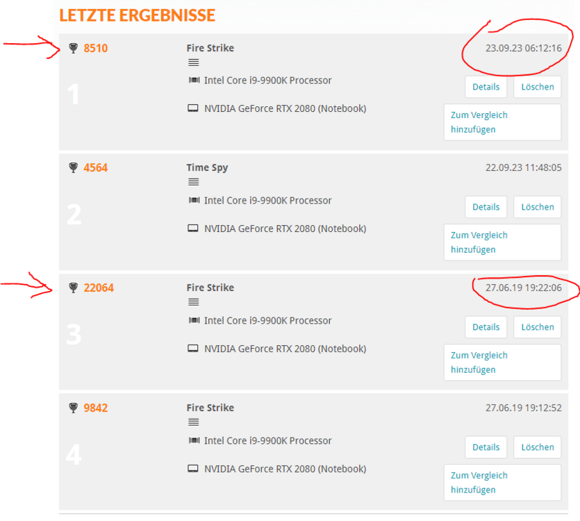 so, habe mir doch nicht so viel Zeit mit der Neuinstallation gelassen 😉.... muss euch auch noch über meiner Entdeckung "beichten" 1) Windows 11 ist drauf (installiert mit beiden Netzteilen-> 510 W).... sonst Treiber und Nvidia- Treiber inkl. GeForce Experience 2) Mit der Installation der AWCC warte ich noch 3) Steam frisch installiert inkl. 3DMark und RimWorld 4) zum 3DMark (siehe Bild) a) noch mit Windows 10 und nur einem Netzteil 330 W b) Windows 11 mit beiden Netzteilen 510 W c) Windows 11 nur mit 330 W d) Windows 11 mit 510 W 5) RimWorld - flutsch wie noch nie , auch nur mit 330 W ist flüssig; kaum bis kein Unterschied; vllt weil ich weiß, dass es nur ein Netzteil angeschlossen ist...... "Die Beichte" 😅, ich habe entdeckt, dass der letzte Spielstand eine Macke hat und das Spiel ruckelt 🙈. Lade ich einen anderen Spielstand oder starte einen neuen Spielstand, läuft alles flüssig ..... hmmm, lasse das zunächst so stehen. 6) Werde jetzt AWCC installieren und doch mal andere Spiele testen Ergänzung zum Fire Strike Test, habe die Leistung an der Steckdose gemessen: bei b) hatte ist einen Spitzenwert von 398 W gesehen bei c) waren es max. 190 W -