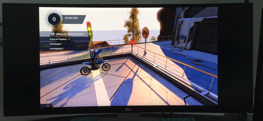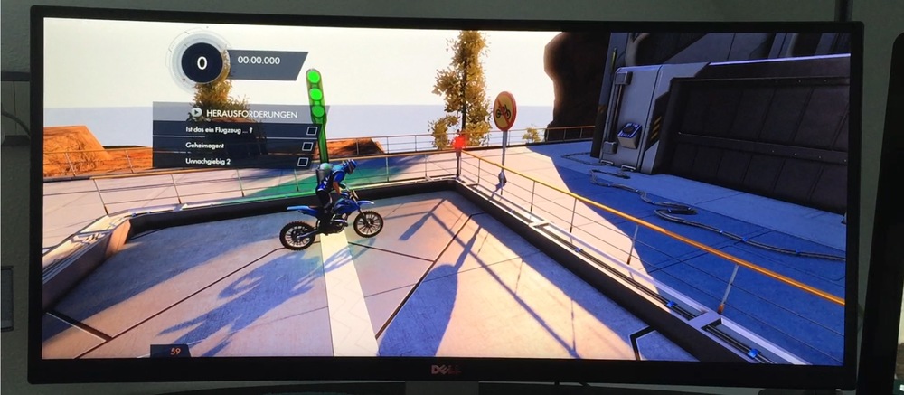 23. Weil es sich gerade eben zufällig ergeben hat. Bei dem Spiel "Trials Fusion" sieht man wunderbar wie viel das 21:9 Format mehr Bild bietet (es wird am Anfang vom Rennen immer "zugeschaltet"). Falls ihr irgendwelche Spielewünsche habt, bei denen ihr einen Vergleich sehen wollt zwischen 16:9 und 21:9, einfach schreiben. Ich bin nach wie vor sehr glücklich mit der Entscheidung zu diesem Monitor.
