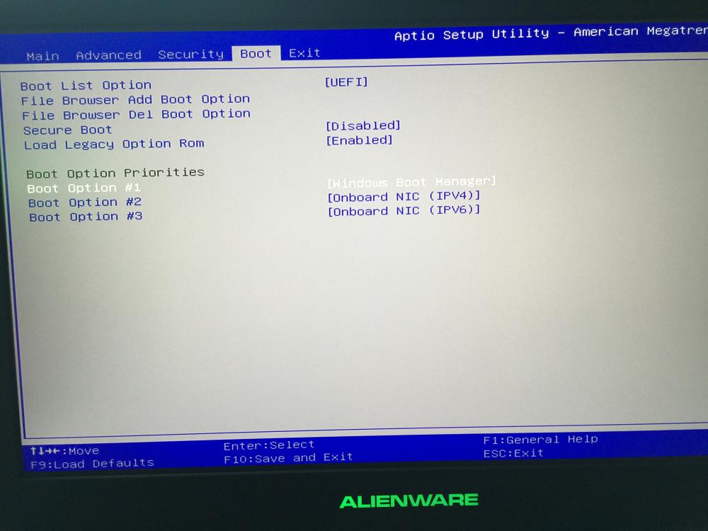 7. Ich hatte bei jedem Bootvorgang mindestens eine Minute ein schwarzes Bild bevor der Alienkopf gekommen ist mit F2/F12..Secure Boot aus -> keine Verzögerung beim starten