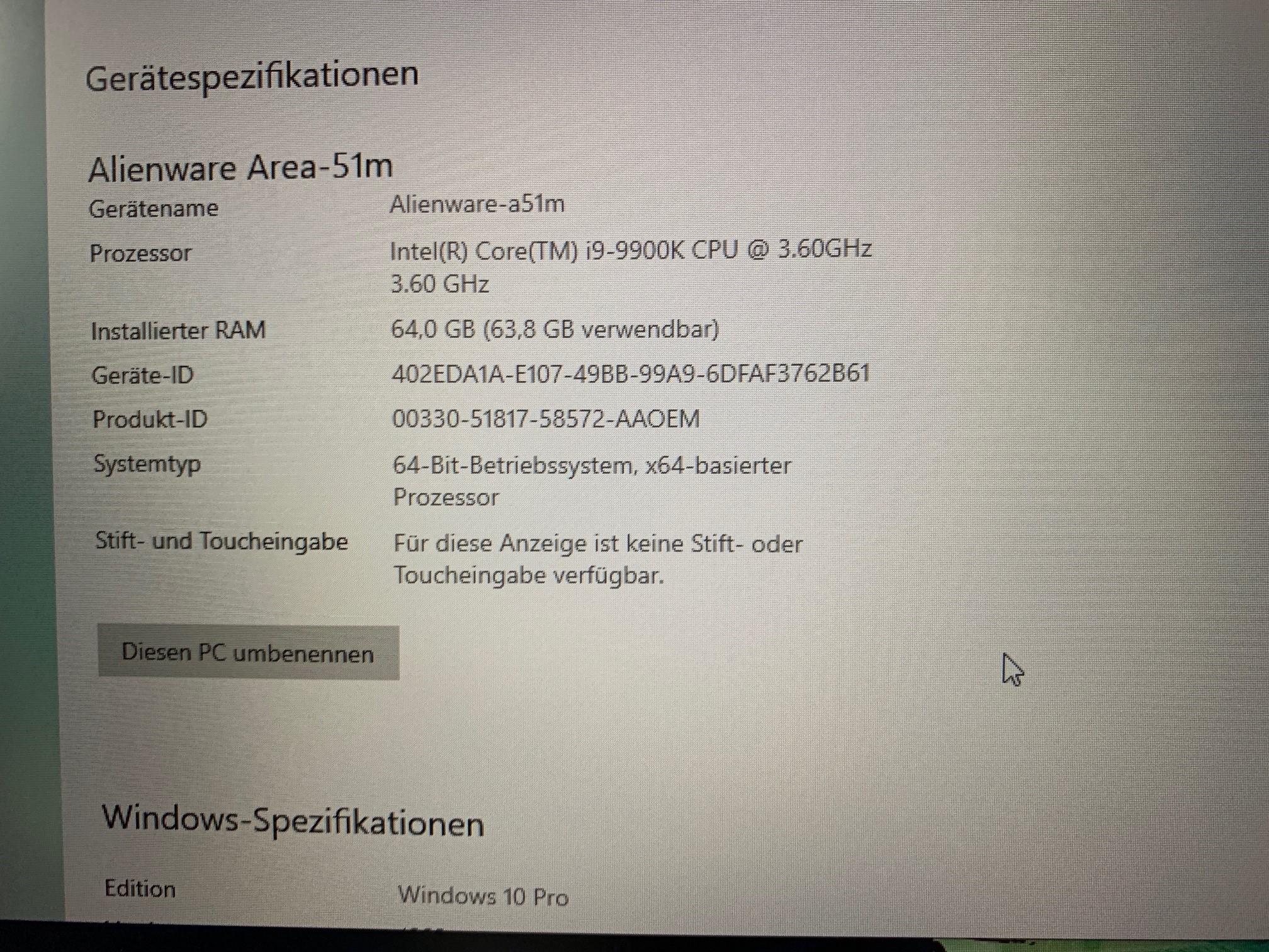 Alienware Area 51m 17“ i9 9900K 64GB RAM / 2TB SSD +1TB HDD / RTX 2080