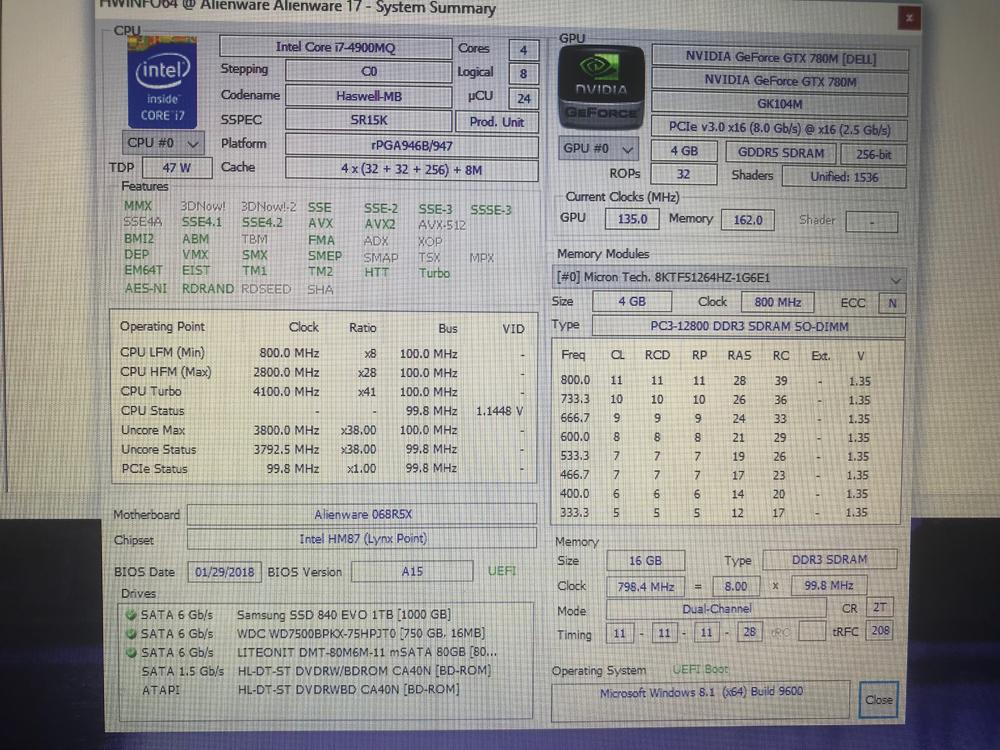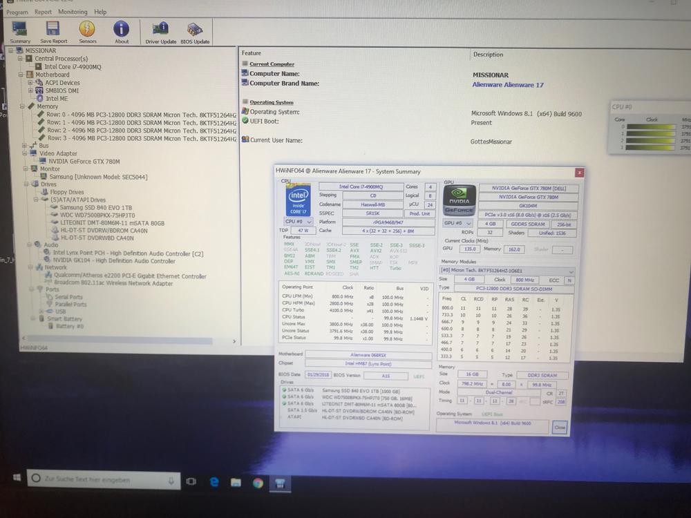5. Hallo, möchte meinen Alienware 17 Laptop (Anfang 2014 gekauft) verkaufen und brächte eine realistische Preiseinschätzung. Hard-Facts in Kürze: -> 4900er Prozessor -> 780m Grafikkarte -> 1 TB SSD dabei + 80 GB m2.SSD -> 120 HZ WLED + 3D Brille (ungeöffnet) -> 16 GB RAM VOS + Garantie natürlich nicht mehr vorhanden. lg