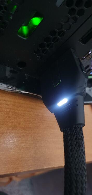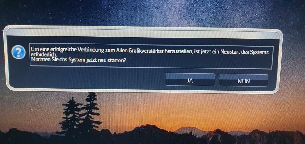 Es gibt Neuigkeiten, da es nicht mit mein Area 51m R1 funktioniert, habe ich die GPU mit den Alpha R2 meiner Eltern verbunden und siehe da, da wurde mir sofort gesagt um den alienware amplifier zu nutzen starten sie bitte neu und was vorher auch nie war, das Kabel leuchtet jetzt (siehe Bild). Habe ich getan, danach blinkt am alpha r2 der Alienkopf 6mal orange hintereinander mit kurzen Abständen, was bedeutet das? -