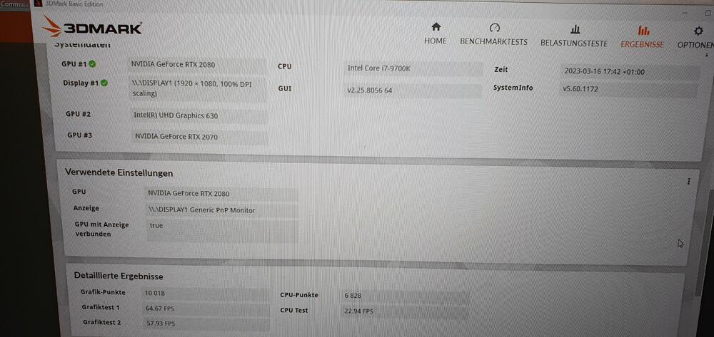 Also es gibt eine Nvidia GPU-Aktivitäts icon unten rechts, da steht einmal die 2070 und danben die 2080 und bei der 2070 ist z.B. ein ausgeführte Datei offen, bei der 2080 wesentlich mehr und ist mit dem Laptop verbunden, wäre jetzt natürlich interessant zu sehen, ob man so switchen könnte ganz einfach. ich installiere mal den 3DMark. P.S. es ist nur eine 2070... keine Super, 2 mal hintereinander bei ebay verarscht wurden, langsam nervts mich echt. Edit: anscheinden nutzt er beim 3D Mark alle Grafikkarten, zumindest sind alle 3 (mit integrierter 630 gpu) dort bei Test angezeigt, somit bekam ich beim Firestrike 22500 Punkte. Wollte dann mal die 2080 und 630 gpu deaktivieren, aber da kommt es immer zu extrem langen ladezeiten bei starten von firestrike und nach etwa 45min wenn der test komplett durchgelaufen ist, kam eine Fehlermeldung und 1600 Punkte, da scheint auch so einiges nicht zu harmonieren. -