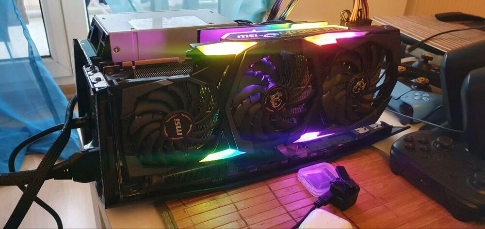 Hallo, seit heute ist der Alienware Grafikverstärker von @Nuestra da, vielen Dank an dieser Stelle erstmal. Leider geht tatsächlich der Deckel nicht drauf, da die 3 Lüfter von der GPU einfach zu dick sind. Ich habe jetzt eine RTX 2080 Ti x trio von MSI eingebaut und wie auf den Bildern zu sehen, auch alles ordnungsgemäß angeschlossen zum testen an mein Area 51m R1, gab es noch irgendwas was man beachten musste damit das ganze funktioniert, im Geräte Manager habe ich schon gesucht, findet leider nichts? -