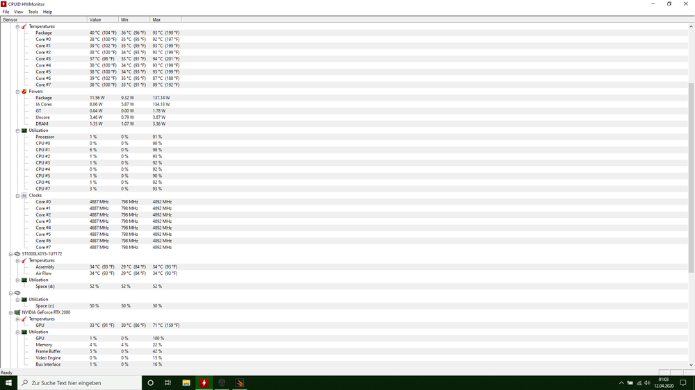 Habe immer die schönen Gadgets an der rechten Seite, da kann man Live immer sehen wieviel Temperatur, Fan in %, Auslastung/MHz ect. die GPU, CPU hat, finde ich sehr schön gemacht, da pegelt sich der i7 9700k bei 35-38°C ein und die GPU bei 32°C, auch in Spielen durch das undervolting, bleibt der i7 bei 55°C max. Temp. und GPU bei 74°C und das beste ist, in Sekunden gehen die Temperaturen nach dem Spielen wieder in Ausgangsstellung, bin ich verplüfft wie gut das funktioniert beim A51m. -