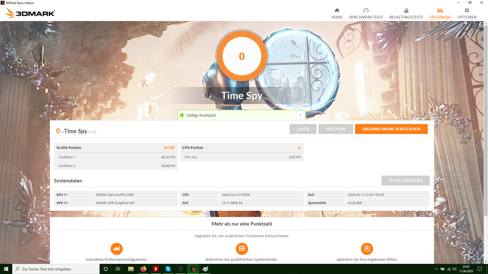 Hm ok, hier nochmal ein Time Spy Test mit OC 1 im Alienware Command + Leistung. Aber vergiss nicht, ich hab nur ein i7 9700k und ihr ein i9 9900k. -