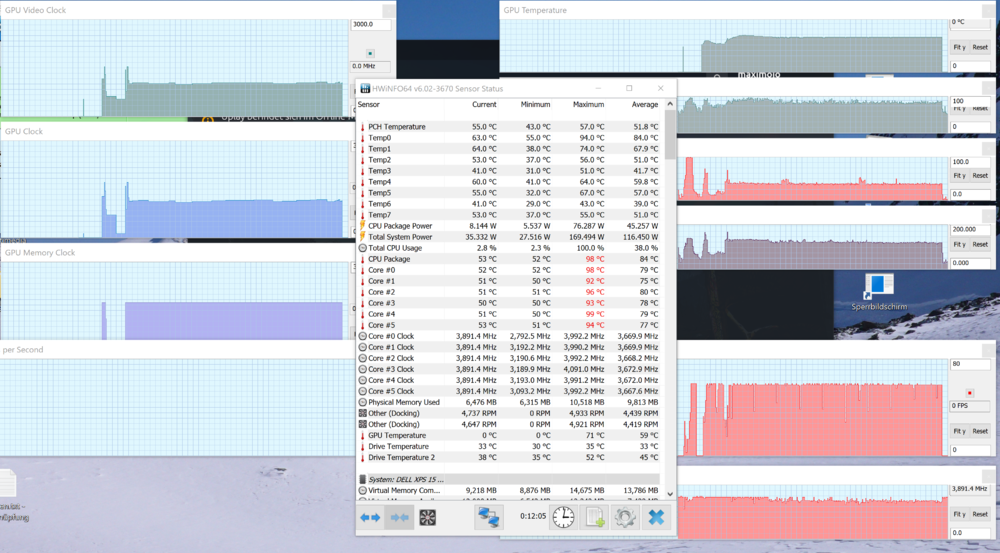 5. Die Framedrops sind irgendwie ohne jegliches Update verschwunden. Hatte schon vorher alles mal neu installiert gehabt incl. Windows- war echt mit dem Latein am Ende. Firestrike ist im Vergleich zu Timespy nicht so doll- TB3 limitiert halt in niedriger Auflösung und altem DirectX. https://www.3dmark.com/fs/18861815 Hab mit dem Dell+ Razer Support Kontakt gehabt, nirgendwo Ideen warum die Leistung nicht da ist im Vergleich zu anderen Xps 9570( FS Grafikscore ist bei anderen z.B. über 16k). Werde jetzt alles zurückschicken- für nur 3/4 der Leistung ist das zu teuer. Die CPU Package Temperaturen sind halt Spikes ohne UV, da geht kurz mal der Boost runter und das wars. Sonst ists voll in Ordnung- bei 45 Watt durchschnitt halt 80 Grad- dazu noch Grafikabwärme.