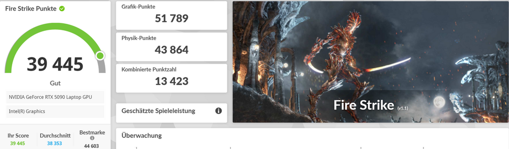 @pitha1337 Vielen Dank für das posten der Benchmarkergebnisse. Hier nochmal zum Vergleich meine Benchmarkergebnisse mit der RTX 5080 von dem Alienware 18 Area-51 das ich zurückgesendet habe. CPU Leistung etwas höher, trotz gleicher CPU. GPU im Fire Strike etwas höher, was ich auch nicht verstehen muss. Wie sind deine Gaming Temperaturen auf ausgeglichen, so wie man normal spielen würde, weil Overdrive dient meiner Meinung nach nur zu Testzwecken? -