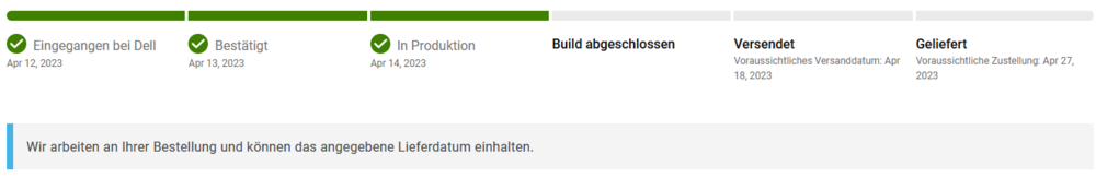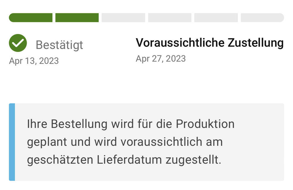 Heute wurde mein Status aktualisiert. Lieferung am 26.04.2023. Gerade eben noch mal geschaut, jetzt steht plötzlich Lieferung am 19.04.2023. Bin gespannt ob das funktioniert. -