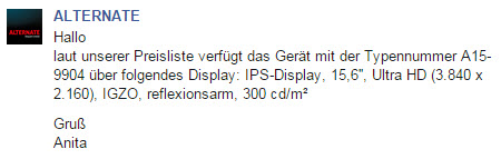 Ich glaube das FHD-Display willst du dir nicht antun Einsteinchen. Auch wenn bei notebooksbillger 2 Jahre VOS drin sind, es wiegt das UHD Display finanziell nicht auf, denn 1 Jahr VOS hast du mit Sicherheit auch bei Alternate. -
