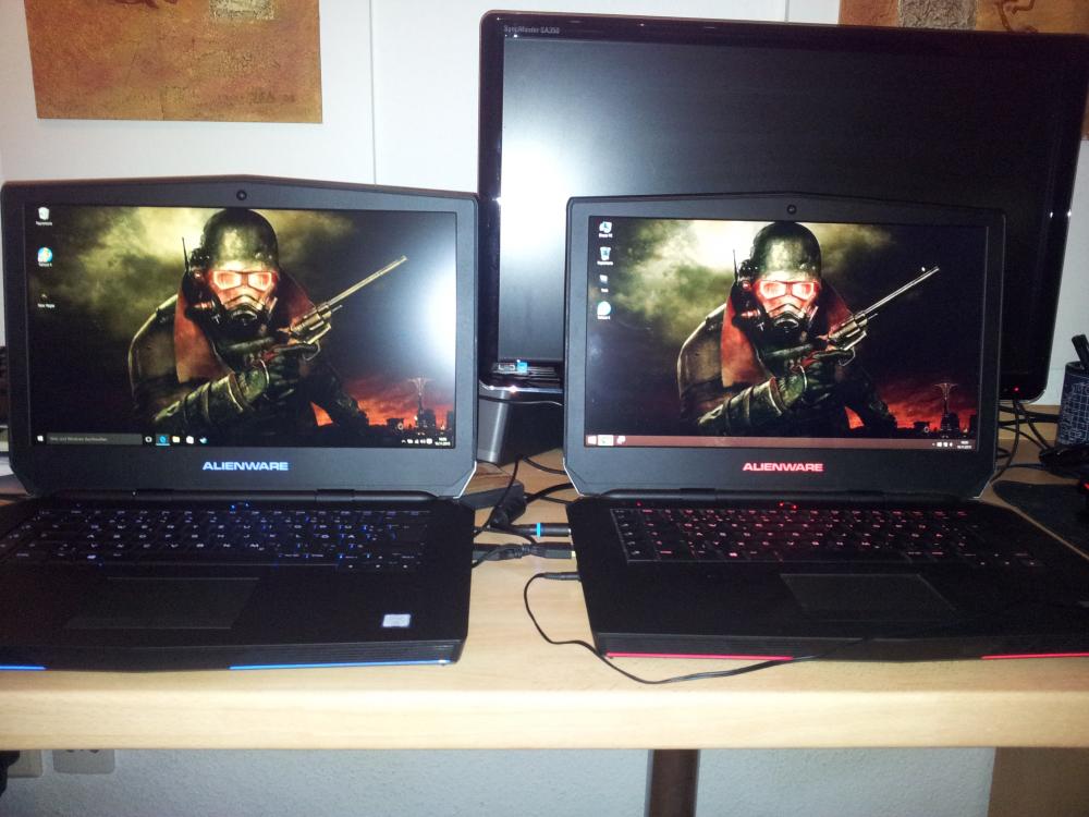 Guten Abend zusammen, der neue AW15 R2 ist heute angekommen und ich bin natürlich nun schon ein wenig am testen. Im Prinzip kann ich alles bestätigen, was bereits bei Notebookcheck über ihn zu lesen ist. Die wichtigste Frage war wohl jene nach dem Display, dass nun ja doch um einige Nits' ärmer geworden ist als zuvor. Ich habe ihn direkt neben den R1 gestellt, mit ein und dem selben Hintergrundbild und so laifenhaft den Unterschied "gemessen". Insgesamt ist der R2 (wohl wenig überraschend) tatsächlich etwas dunkler. Besonders gut bei starken Lichtquellen (auch wenig überraschend) zu erkennen. Insgesamt muss ich aber sagen, dass es keine sonderlich hohe Einschränkung darstellt, zumindest gefühlt. Sofern ich irgendwelche Tests an dem Gerät durchführen soll, lasst mich einfach wissen mit welchem Tool und unter welchen Einstellungen, dann poste ich die Ergebnisse. Der R2 von mir hat folgende Specs: Intel i7 (6820 HK) 16gb Ram (DDR4) GTX 980M SSD 256 GB Windows 10 Links R2, Rechts R1 -
