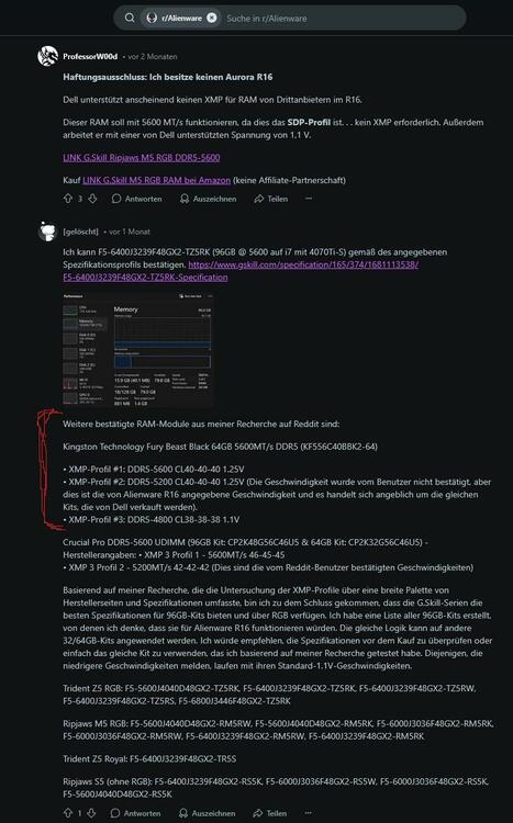 Aurora R16 Ram Problemkroenen04 antwortete auf kroenen04's Thema in Allgemeines & Troubleshooting Ich habe diesen hier bestellt: https://www.amazon.de/dp/B09T8TH7PG?ref=ppx_yo2ov_dt_b_fed_asin_title&th=1 Laut Reddit sollte der eigentlich funktionieren...aber war wohl nix.Ev.durchs BIOS Update weggepatched.