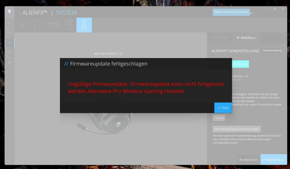 Alienware Pro Headset Probleme mit dem Update und Einstellungenkroenen04 antwortete auf kroenen04's Thema in Allgemeines & Troubleshooting
