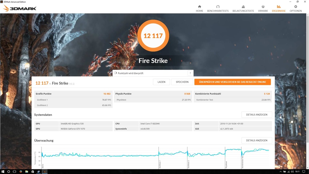 17. Der Benchmark selbst geht denke ich in Ordnung. Nur stört mich die CPU Temp.. aber seht selbst!