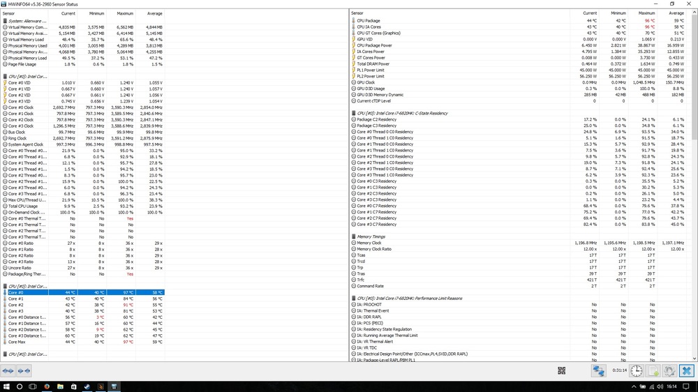 21. Vorhin beim Stresstest von Dell/Alienware war der 1. Kern bei 91° der Rest ist bei 81° rumgedümpelt. Sobald ich die Clean Install hinter mir habe inkl. aller Treiber etc, lade ich mir auch die Spiele und werd dann in den nächsten Tagen auch die Temps nach 30-60 Minuten mal mehr von den Temps erzählen. 100° erreiche ich definitiv erstmal nicht. Und das mit Stock Paste und ohne Cooling Pad. Steht aufm flachen Tisch.