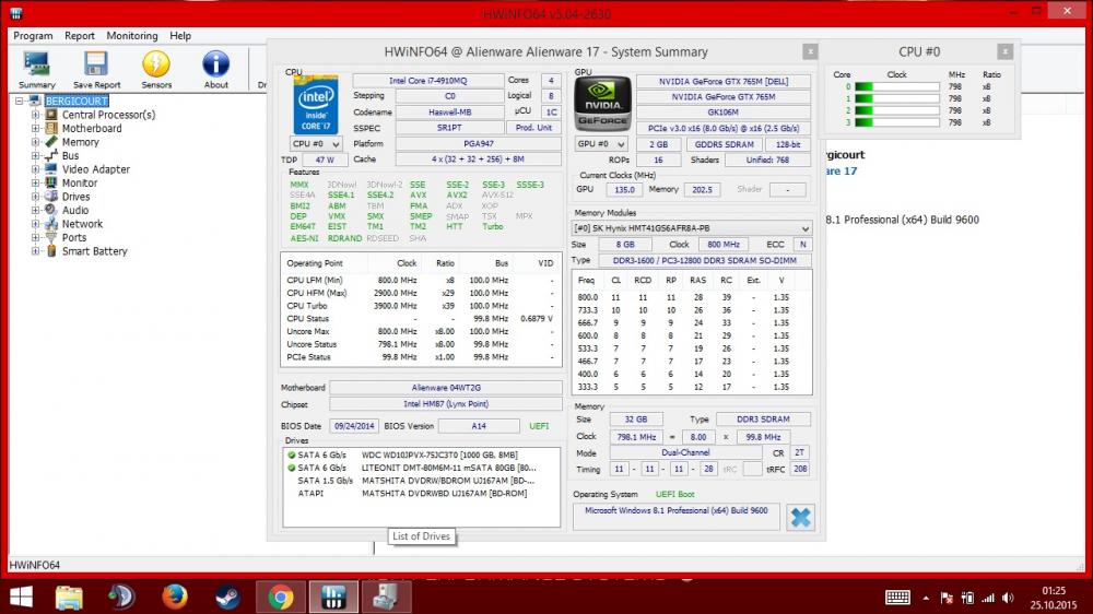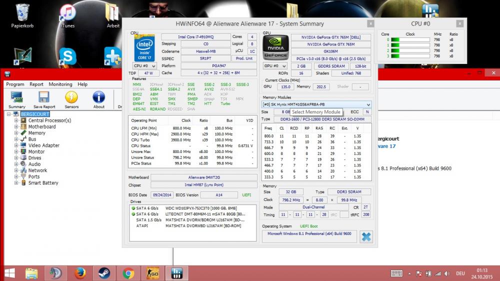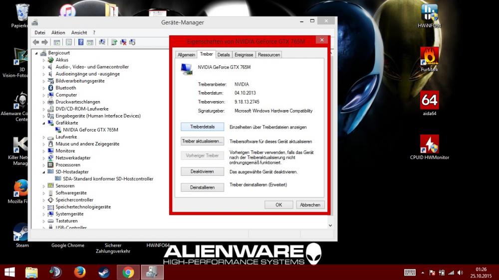 13. Hallo, Ich habe das AW 17 R1 120Hz Display, spiele aber nur, wenn ich mein Monitor angeschlossen habe. Ich habe mal in einem anderen AW Forum diese Frage gestellt: "Intel Dynamic Platform und INtel HD Grafik ließen sich aber nicht installieren es kam immer die meldung das mein system nicht den mindestanforderung entspricht. jetzt lässt sich natürlich auch nicht zwischen den grafikkarten switchen nehm ich an, oder ? " Dies war die Antwort: "Die Intel HD Grafik Treiber lassen sich deshalb nicht installieren, da die interne Intel Grafik von Haus deaktiviert ist wegen dem 120Hz Display. Den Treiber brauchst du also nicht. Aus diesem Grund kannst du auch nicht switchen, da du keine Optimus Funktion hast, was wiederum gut ist wenn du mal eine andere GPU einbauen möchtest." Der HWInfo Screen folgt noch. Vom Geräte Manger ebenfalls. Das Switchen von Grafikkarte zur Intel reagiert nicht. Womöglich weil ich kein Treiber installiert habe. Habe nach dem Kauf das System von der DVD neu installiert und die treiber von der 2.ten DVD gezogen.