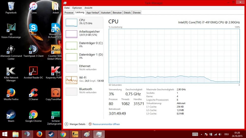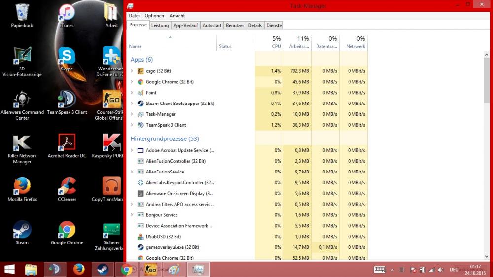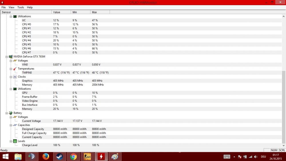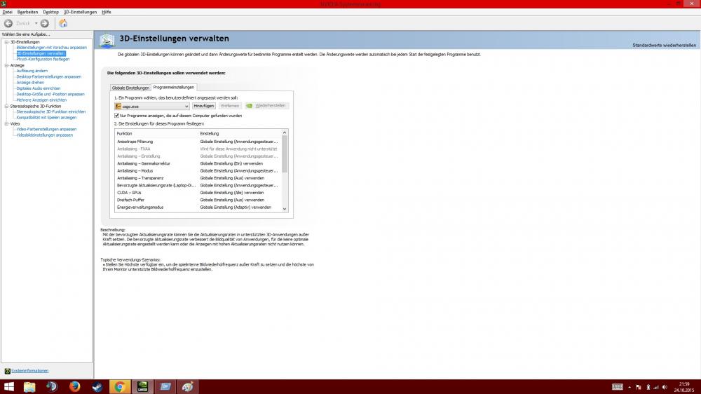 15. Hallo, sehr oft höre ich von meinen Mitmenschen, dass sie mit 250FPS oder mehr spielen. Daraufhin habe ich bei CSGO auch mal die FPS Anzeige aktiviert aus Neugier. Ich habe leider nur schwankende FPS Zahlen im Beeich von 50 bis 70, nie mehr als 100. Auf meinen alten Office Rechner (AMD X2, GT 320, 4GB Ram) habe ich Konstanze 50-60, um so mehr stört es mich, dass ich ein ALienware 17 mit diesen Komponenten gekauft habe und nur so wenige FPS bekomme. Verbaut ist eine i7 4910mq 2,9Ghz, GTX765m, 32GB Ram Ich spiele CS GO auf einem externen Monitor (Samsung BX240, 24"), ist das vielleicht ein Problem ? Meine CSGO Einstellungen sind eigentlich sehr niedrig, doch trotzdem habe ich euch ein Bild angehängt. Meine Vermutung ist, dass irgendwas falsch eingestellt ist. Leider kenne ich mich mit der Materie garnicht aus, deswegen wende ich mich an euch. Könnte es sein, dass das Spiel mit der Intel Grafik startet statt der GTX ? Oder irgendwie eine falsche Einstellung zu den i7 oder Ram ? Denn ich kann nicht glauben, dass der Laptop wirklich nur max 70 FPS schafft. Ich habe euch anbei ganz viele Screenshot gemacht und anghängt, mit der Hoffnung es euch zu erleichtern. Vielen Dank