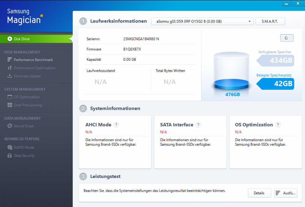Wenn man unter der Methode auf der 950 Pro installiert hat man mit Samsung Magician keinen Zugriff auf die SSD. Sie wird auch nicht angezeigt. Lustigerweise wird mit CrystalDiskInfo angezeigt das der Anschluss PCIe 2.0 x2, ich habe hier im Forum noch einen andere Screenshot von CrytalDiskInfo unter AHCI mit dem Samsung Treiber und dort steht es mit PCIe 3.0 x4 korrekt. Die SSD wurde seit dem Einbau aber auch nicht bewegt, also dürfte sich nicht viel verändert haben. Den Samsung Treiber kann man aber auch nicht manuell über den Geräte Manager installieren. Hab mal ein paar Screenshots gemacht. Falls jemand eine Idee hat wie man den Treiber noch installieren könnte immer her damit.