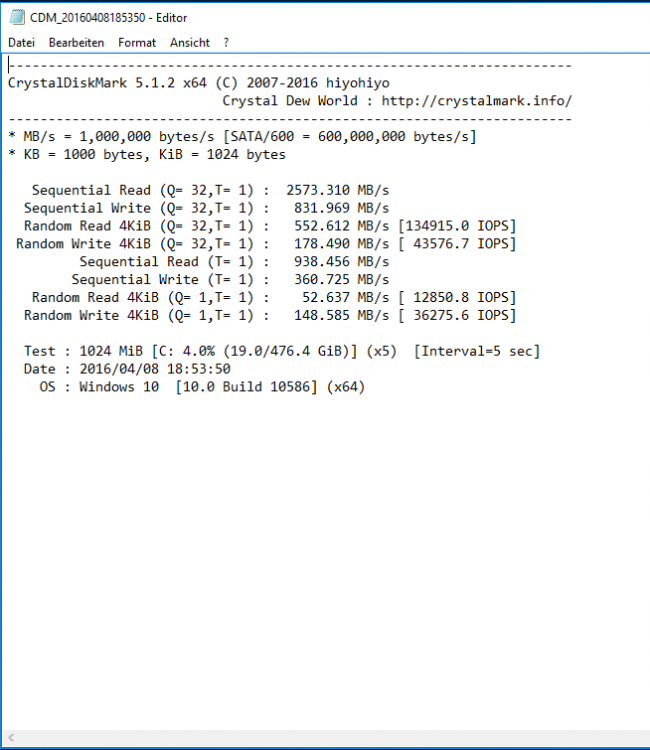 So hab jetzt nochmal wie sonst installiert um mal die Geschwindigkeit zu vergleichen, aber wieder kommen sehr unterschiedliche Ergebnisse zustande. Poste hier mal 2 Screenshots, einmal den besten Wert und einmal einen anderen den ich gespeichert habe. Das ist jetzt aber mit dem Samsung Treiber 1.0, unter Raid hatte ich ihn noch nicht installiert werde ich aber später mal nachholen. Wie man sieht sind die Werte teilweise besser, aber macht jetzt auch nicht so einen großen Unterschied zwischen RAID ohne den Treiber und AHCI mit Samsung Treiber -