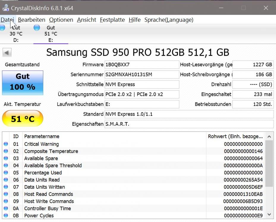 Hab die 950 Pro mal in ein anders Notebook gesteckt. Ergebnis ist das gleiche, 48-53 Grad Ist also normal für diesen Speicher. -